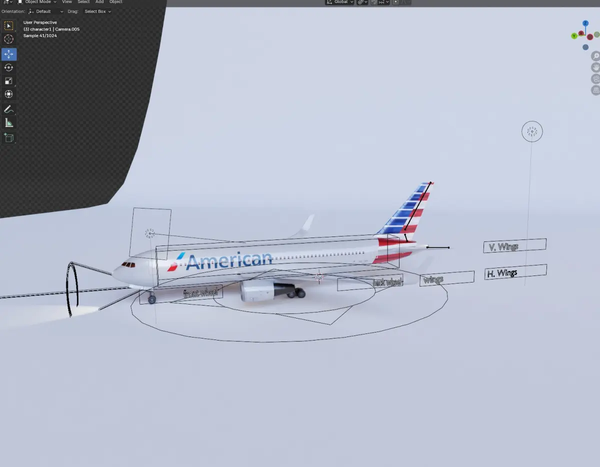 Front lights: There are 4 spotlights added to a separate collection. Just control their intensity and you should be able to illuminate the path ahead! Also, in the material used for the lights, increase the strength of the Emission property. If you want to turn them off, set it to 0, and when you want to turn them on, set it to a value like 30.Red Light: About the red light, you can control the Emission strength. Zero to turn it off and 30 to turn it on.You can also animate it to go on/off if you want.Rigging: Use Pose mode to move front wheels, rear wheels, wings, rear tail, rotor.When you animate the airplane to move forward, the engines will spin also.