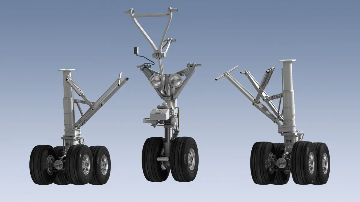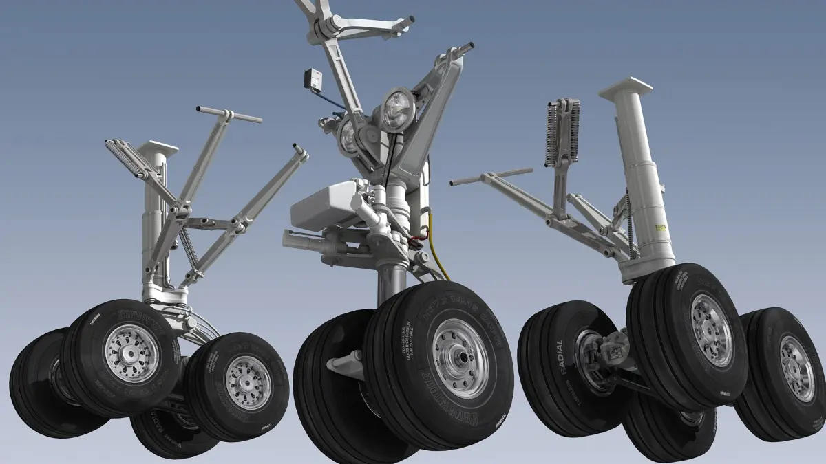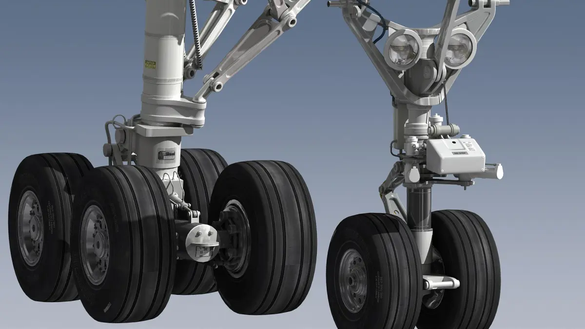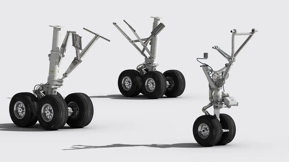 Scene includes two (left and right) main landing gears and one nose landing gear.