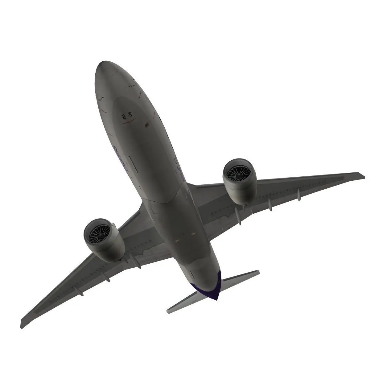 Animated landing gear, spoilers, slats, speed brakes and cargo doors. Includes 2 textures, 1 texture for the exterior mesh (4096 x 4096) and 1 texture for the cockpit (4096 x 4096) The cockpit details includes all panels, seats, flight controls, throttle. On the exterior you will find many details like windshield wipers, various antenna's, probes sensors and lights. Model is suitable for close and medium renderings. The landing gear has been animated in tilted position as well for landing shots.