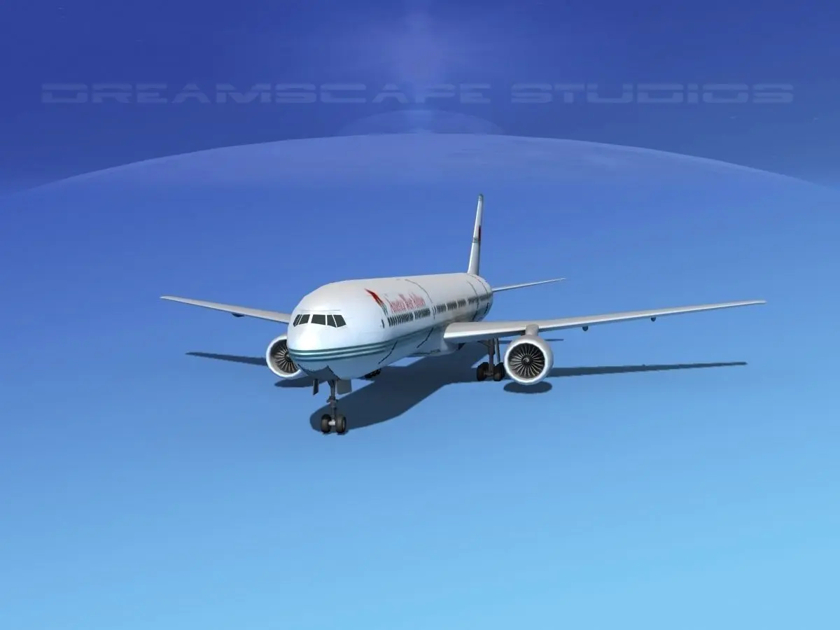 The Boeing 777 is a family of long-range wide-body twin-engine jet airliners. The stretched 777-300 was designed as a market replacement for 747-100s and 747-200s. The first -300 was delivered to Cathay Pacific on 1998. Because of the aircraft's length, the -300 is equipped with a tailskid and ground maneuvering cameras.