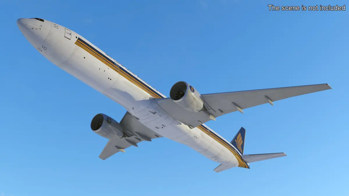 Boeing 777 Singapore Airlines Rigged is a high quality, photo real 3d model that will enhance detail and realism to any of your rendering projects. The model has a fully textured, detailed design that allows for close-up renders, and was originally modeled in 3ds Max 2020 and rendered with V-Ray. Renders have no postprocessing!