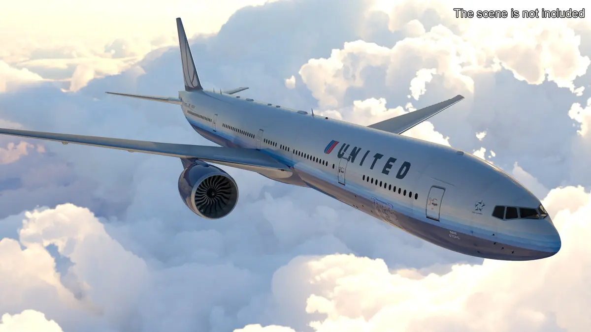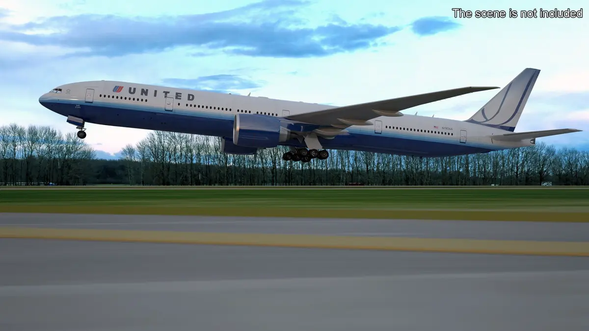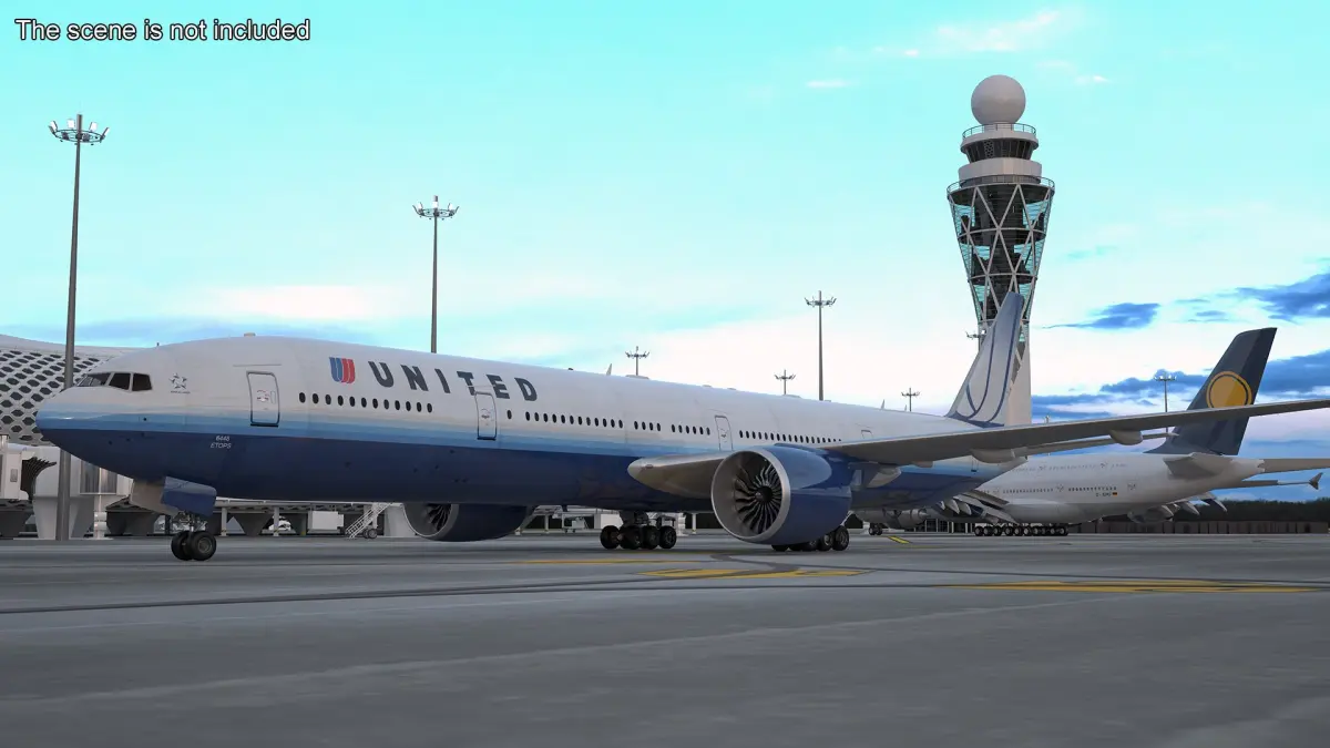Boeing 777 United Airlines Rigged for Cinema 4D is a 3d model of twin-engine jet airliner developed by Boeing Commercial Airplanes.
