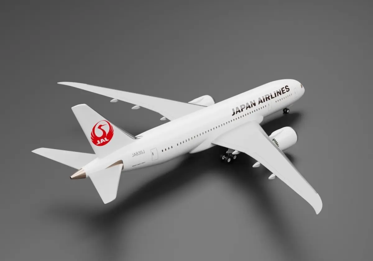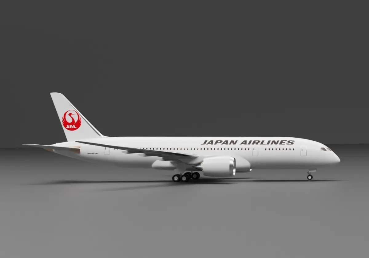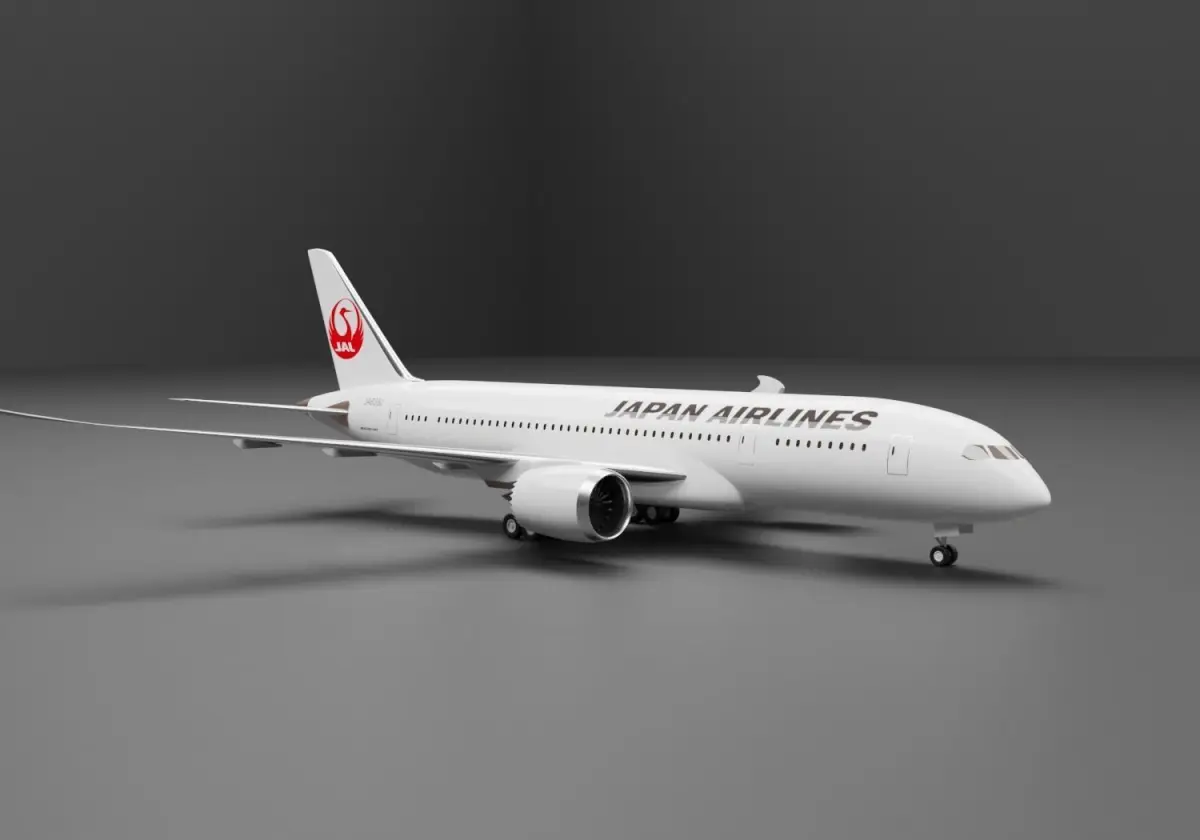 This is a 3d model of a Boeing 787-8 with Japan Airlines livery