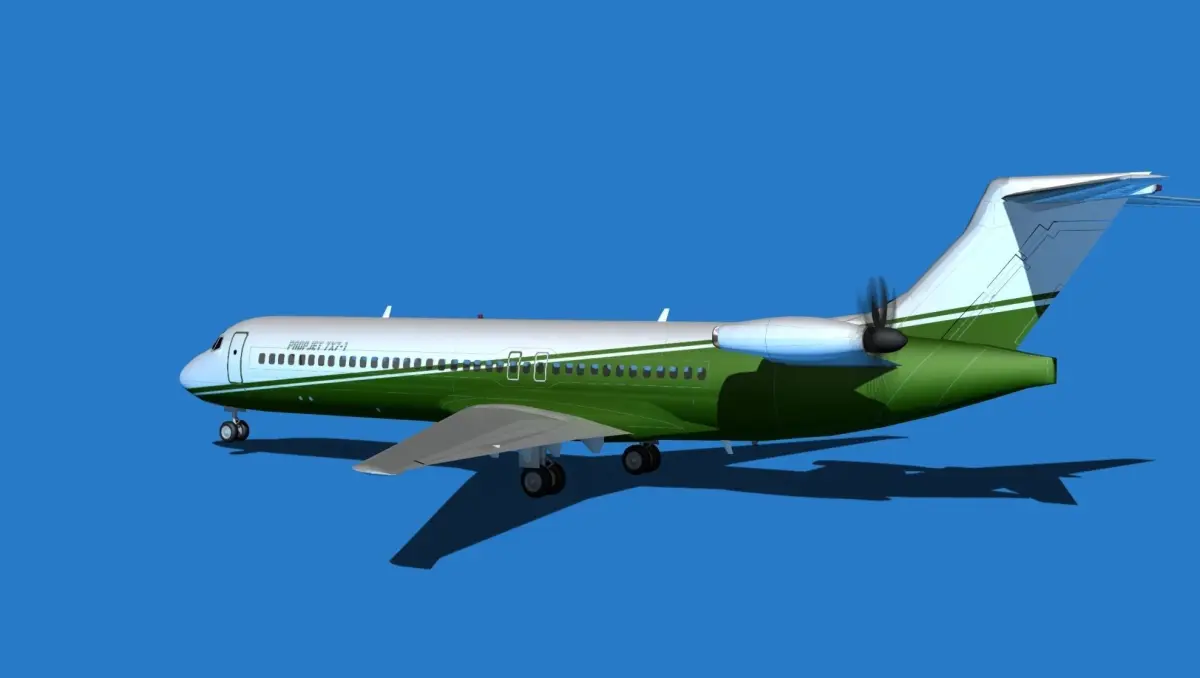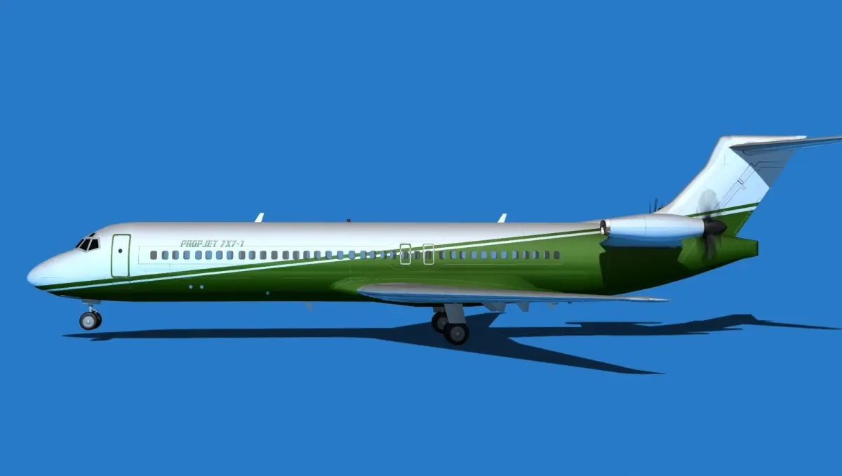 The Boeing 7X7 Jet fan is a Dreamscape interpretation of the Boeing Jet fan concept that was considered by Boeing Aircraft to replace jet engines with high rates of fuel burn with a much more economic turbo fan pusher engine arrangement. These aircraft have been considered more than once for design development. This version is built on a Boeing 717 airframe.The model was built near to scale in real units and built based on drawings, photos, and other documents. This model has animateable features including; ailerons, elevators, flaps, fans, rudder, landing gear, landing gear doors, and wheels. These models render very well and look very realistic using good animation, lighting and rendering techniques. It can be used in an animated or static position within a scene, animation or animated video, or possibly programming for a flight simulation application. This model was not designed for 3d printing; these are to be used as digital files only. If you purchase one for digital printing we do not guarantee that your print will be successful.Exporting of models is limited but good for several software applications. This model is fully textured with all materials UVW mapped and applied. Most materials are planar mapped and major materials include texturing. All textures and materials are included as shown. Objects are logically named for ease of scene management.No cleaning up necessary, just drop your models into the scene and start rendering.No special plug-ins are needed to open scene.In most cases the liveries are based on actual service liveries or paint schemes. Many of the units, airlines or countries who flew the plane are represented here. Dreamscape Studios is a US 3d modeling firm specializing in building high definition, accurate, and detailed 3D models of commercial, civilian, and military airplanes, ships, buildings and other subjects.Dreamscape 3d models are built in ultra-low to ultra-high polygon count, (most often) near to scale and include a good amount of detail based on the resolution target. If you have a question, error or problem with the model, let us know and we will do our best to provide or get a solution for you. Be advised our models are not designed for 3d printing unless they are advertised for that purpose.