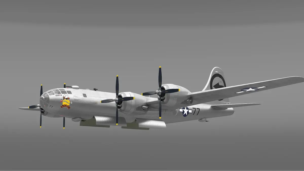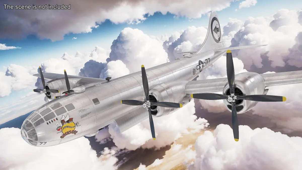 Boeing B-29 Bockscar Flying is a 3d model of heavy bomber aircraft developed by Boeing during World War II.
