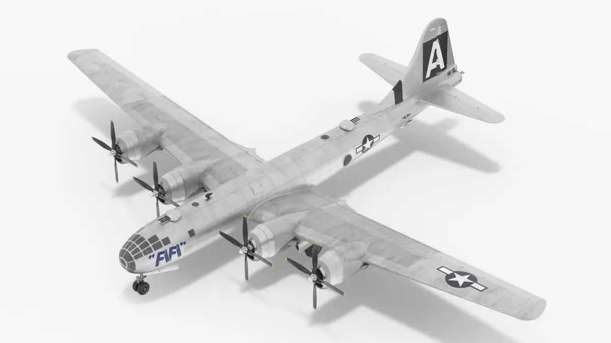 Boeing B-29 FIFI is a 3d model of specific B-29 Superfortress bomber that is notable for being one of the few remaining airworthy examples of this World War II aircraft.
