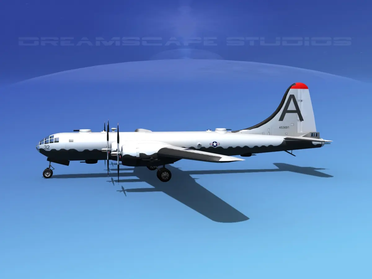 Superfortress is built very near to scale and is fully textured. It has animateable flaps, ailerons, landing gear, landing gear doors, elevators, rudder, bomb bay doors, turret guns and propellers. Model is fully textured with all materials UVW mapped and applied. Most materials are planar mapped and major materials include texturing. All textures and materials are included as shown, 3ds Max models are grouped for easy selection, and objects are logically named for ease of scene management. No cleaning up necessary, just drop your models into the scene and start rendering. No special plugin needed to open scene. Liveries are based on actual service liveries. Many of the countries who flew the plane are represented here. These models render very well and look very realistic using good animation and rendering technique. It can be used in an animated or static position within an animated video or possibly for programming for a flight simulation application. This model was not designed for 3d printing, these are digital files only. The models come in several formats. Exported formats are prepared well to work correctly with every standard modeling software. Dreamscape Studios is US modeling firm with specializing in building high definition, accurate, and detailed 3D models of commercial, civil and military airplanes and ships. Models are built in low to ultra high polygon count, near to scale and include a good amount of detail. The B-29 Superfortress was developed during the early 1940s and saw service near the end of World War II with the USAAF. These aircraft had ranges of 5000 NM and could carry large bomb loads. It was developed primarily to be the first strategic bomber of the US. It was designated and modified to carry the atomic bombs to Japan. This aircraft saw service into the 1950s with the USAF.