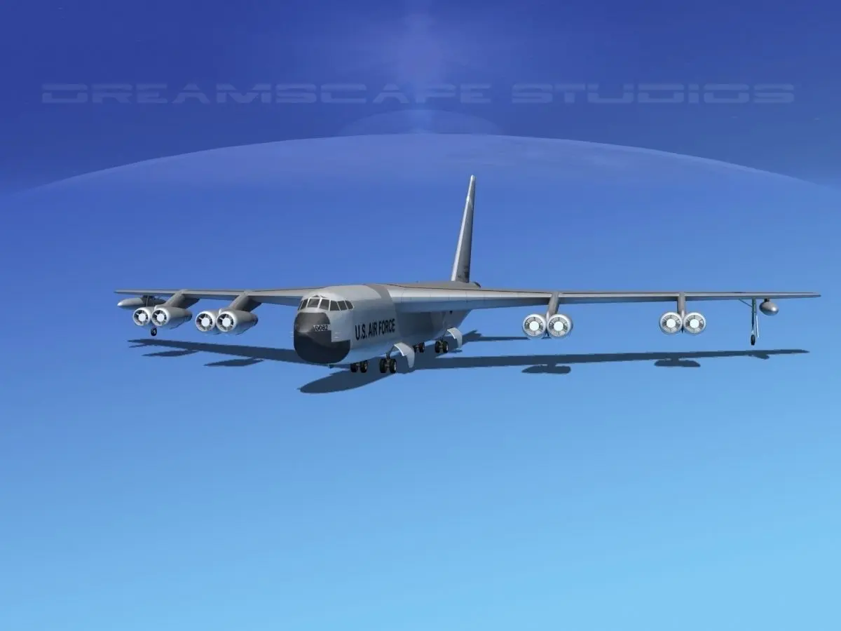 Stratofortress is built very near to scale and is fully textured. It has animateable flaps, ailerons, landing gear, landing gear doors, elevators, rudder, bomb bay doors, turret guns and propellers. Model is available in many formats.
