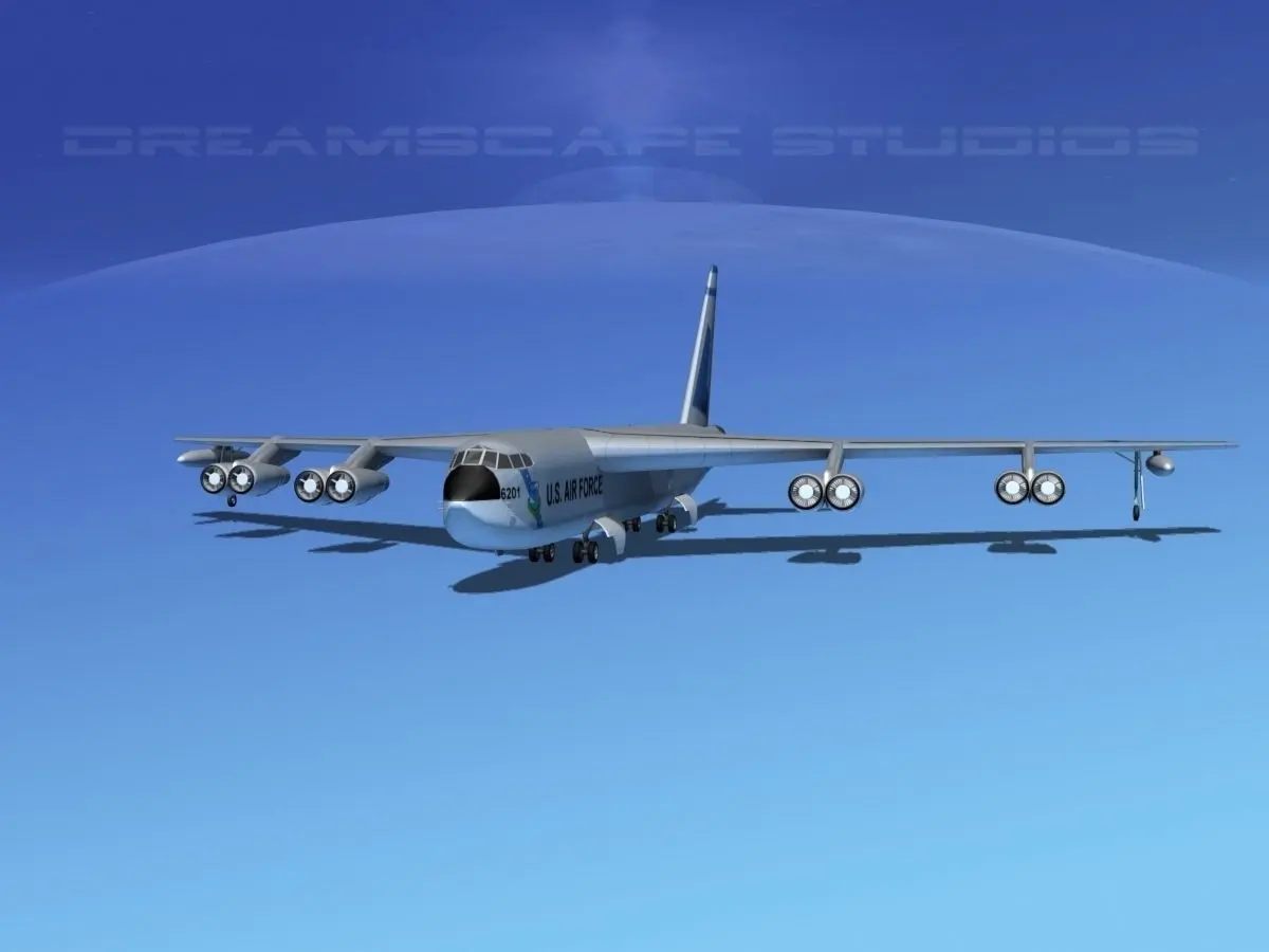 Stratofortress is built very near to scale and is fully textured. It has animateable flaps, ailerons, landing gear, landing gear doors, elevators, rudder, bomb bay doors, turret guns and propellers. Model is available in many formats.