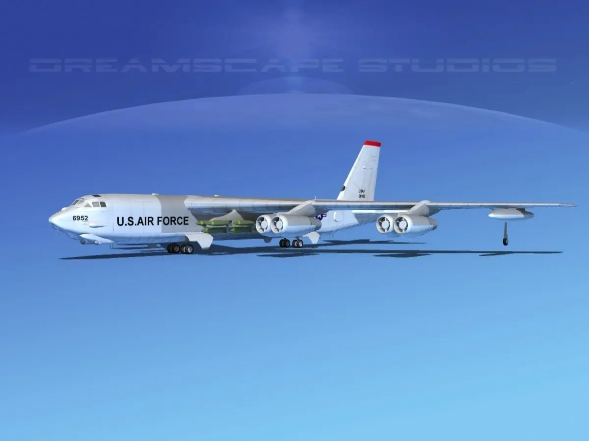 Stratofortress is built very near to scale and is fully textured. It has animateable flaps, spoilers, landing gear, landing gear doors, elevators, rudder, bomb bay doors, turret guns and propellers. Model is available in many formats.