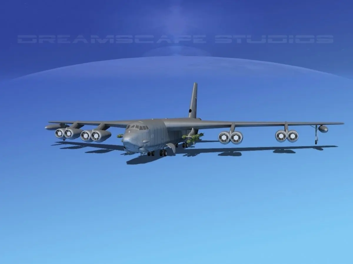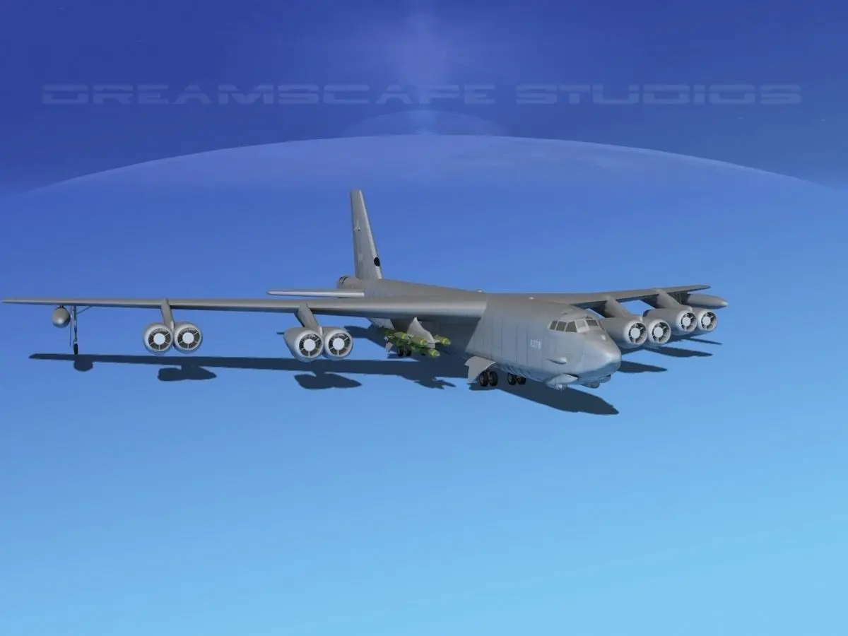 Stratofortress is built very near to scale and is fully textured. It has animateable flaps, spoilers, landing gear, landing gear doors, elevators, rudder, bomb bay doors, turret guns and propellers. Model is available in many formats.