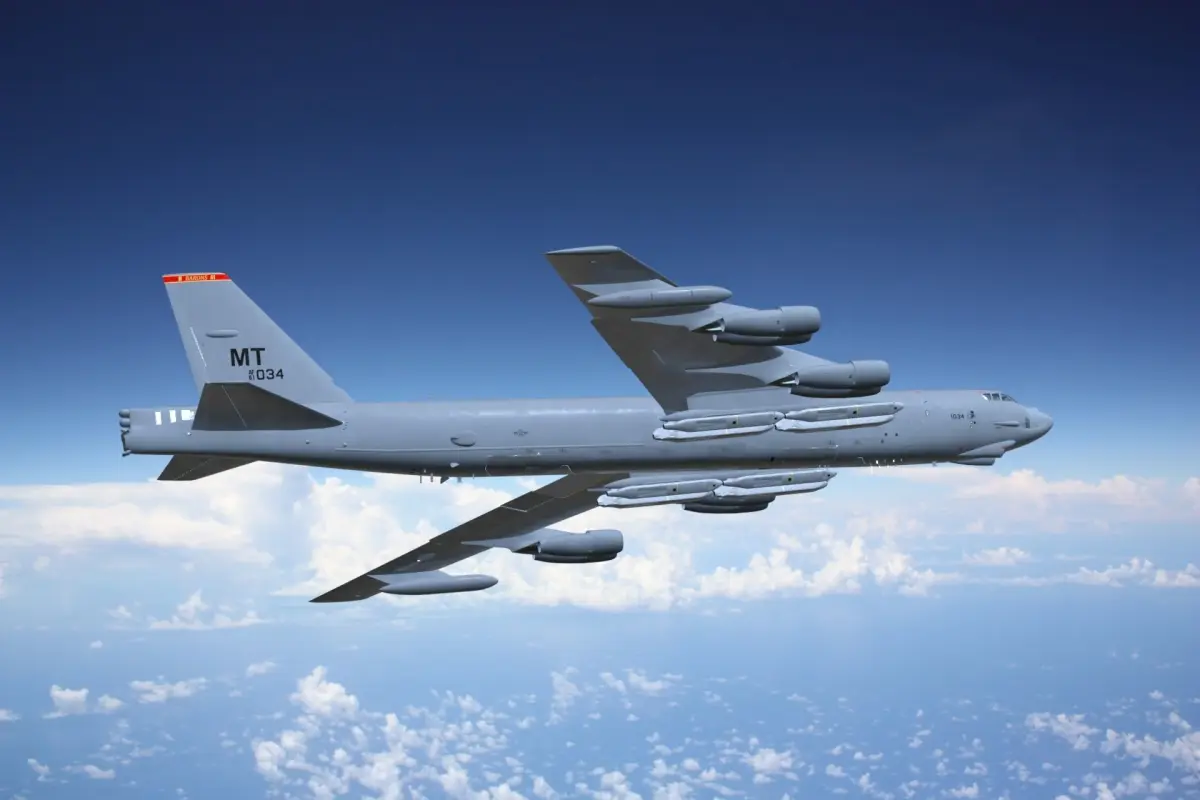 The Boeing B-52 Stratofortress is an American long-range, subsonic, jet-powered strategic bomber. It has been operated by the United States Air Force (USAF) since the 1950s. The bomber is capable of carrying up to 70,000 pounds (32,000 kg) of weapons, and has a typical combat range of more than 8,800 miles (14,080 km) without aerial refueling. The B-52H had the same crew and structural changes as the B-52G. The most significant upgrade was the switch to TF33-P-3 turbofan engines. The ECM and avionics were updated, a new fire control system was fitted, and the rear defensive armament was changed from machine guns to a 20 mm M61 Vulcan cannon (later removed in 1991–94). The aircraft’s first flight occurred on 10 July 1960, and it entered service on 9 May 1961. This is the only variant still in use. A total of 102 B-52Hs were built. The last production aircraft, B-52H AF Serial No. 61-0040, left the factory on 26 October 1962.