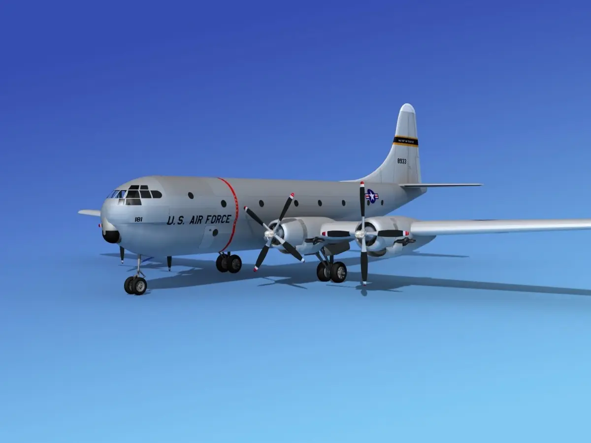 The C-97 model here is built very near to scale. Engines are modeled. The model is fully textured and comes with animatable control surfaces, landing gear, cowl flaps and propellers. The tanker version KC-97 models include a boom that can be animated for mid air refueling scenes. It is available in several different formats.