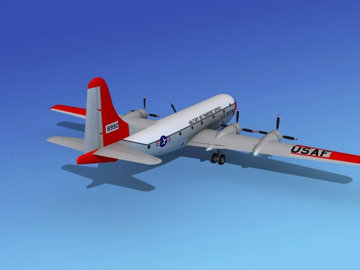 The C-97 model here is built very near to scale. Engines are modeled. The model is fully textured and comes with animatable control surfaces, landing gear, cowl flaps and propellers. The tanker version KC-97 models include a boom that can be animated for mid air refueling scenes. It is available in several different formats.