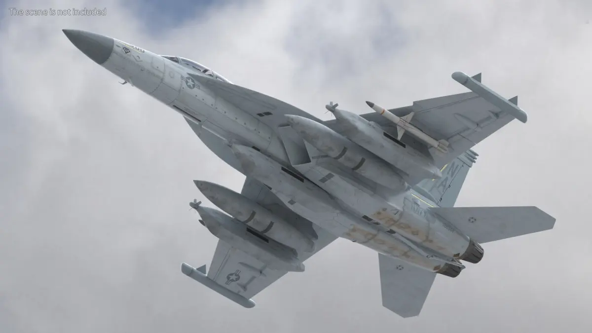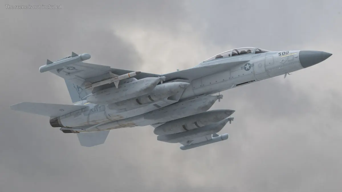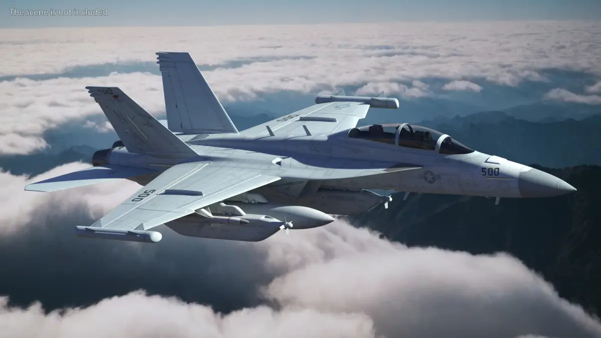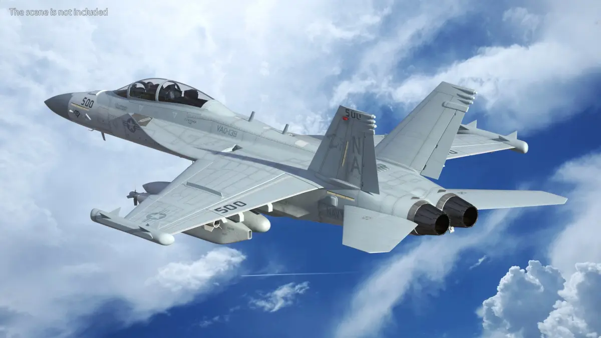 Boeing EA 18G Fighter Jet with Pilot in Flight is a 3d model of specialized electronic warfare aircraft derived from the F/A-18F Super Hornet.