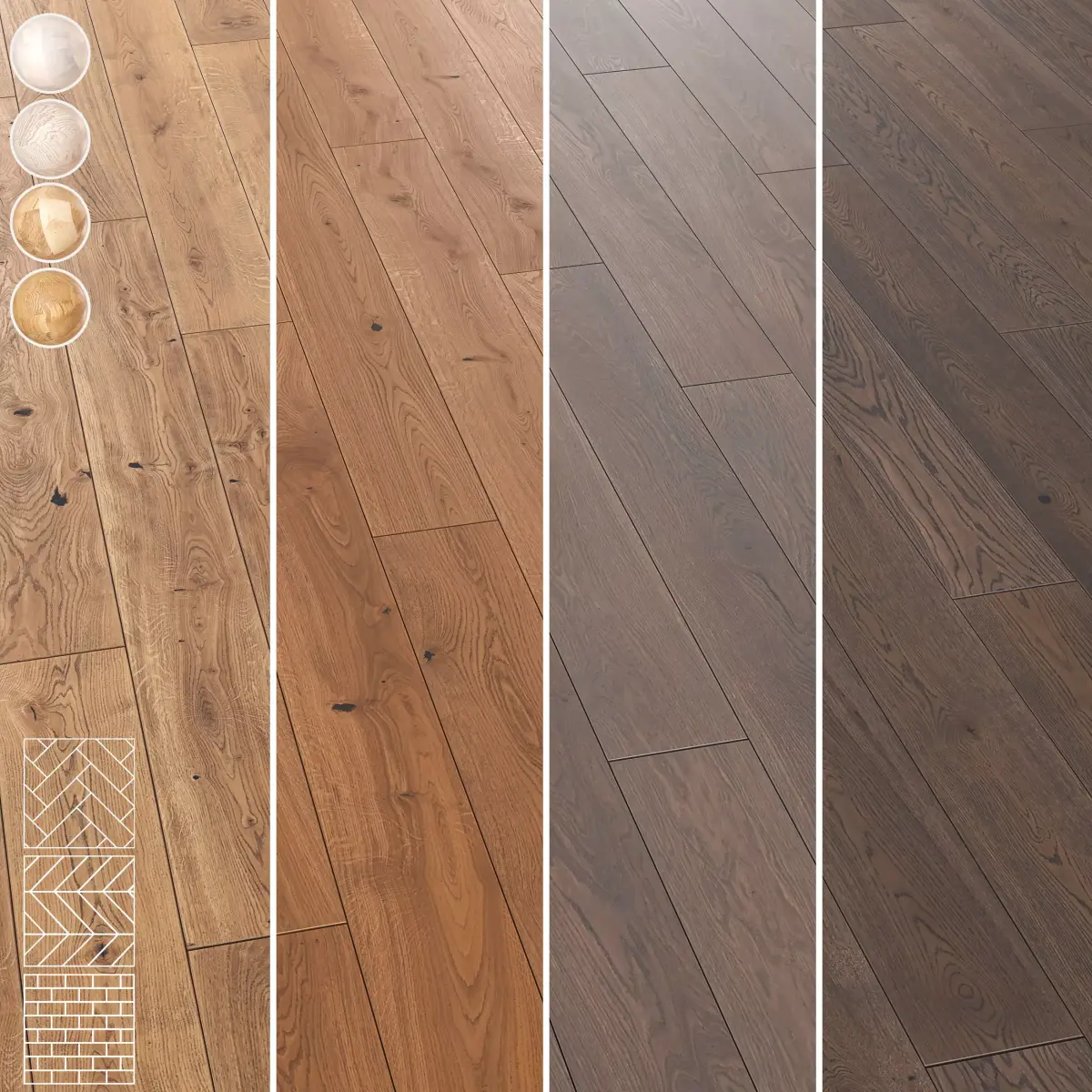 Boen Parquet Wood Floor Collection - 5 Layouts & 4 Colors - 4K Textures (Set 22)