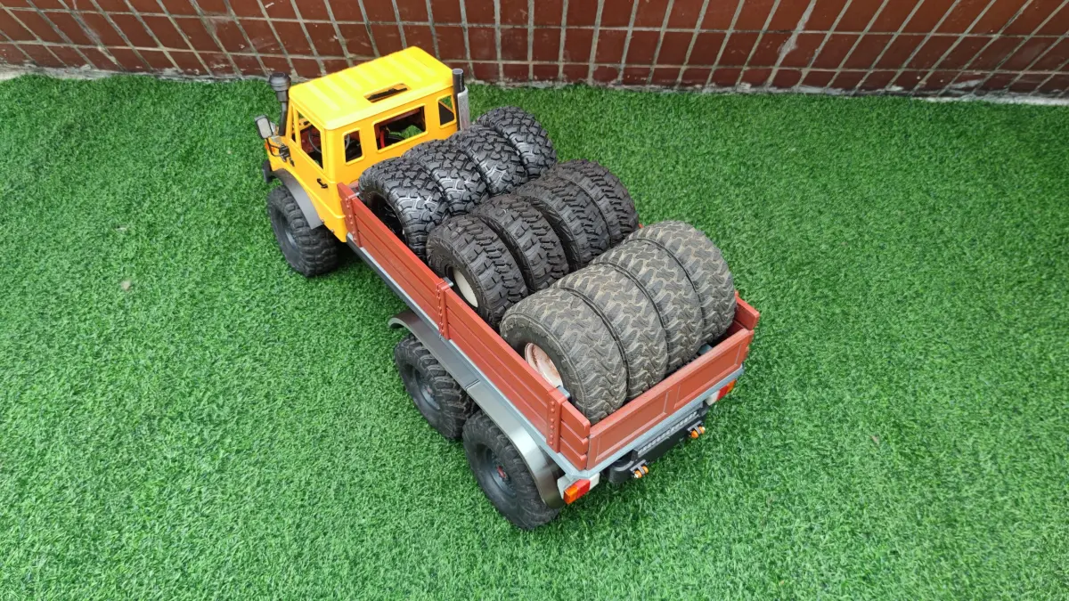 The ideal outermost tyre to tyre width is 240 to 250mm (2 widths of fenders are included so you can run a more aggressive and stable stance, or a narrower but more maneuverable setup. Be sure to also use 120mm tyres and portal axles for the most realistic experience.