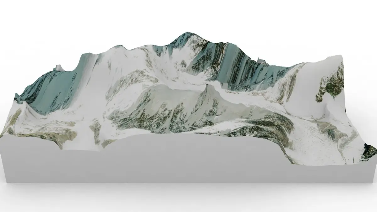 Bogda Peak is a famous mountain in China. It culminates at 5445 m.The map of Bogada peak was made from satellite and GPS data. The texture has a high definition of 3840 x 3584 px