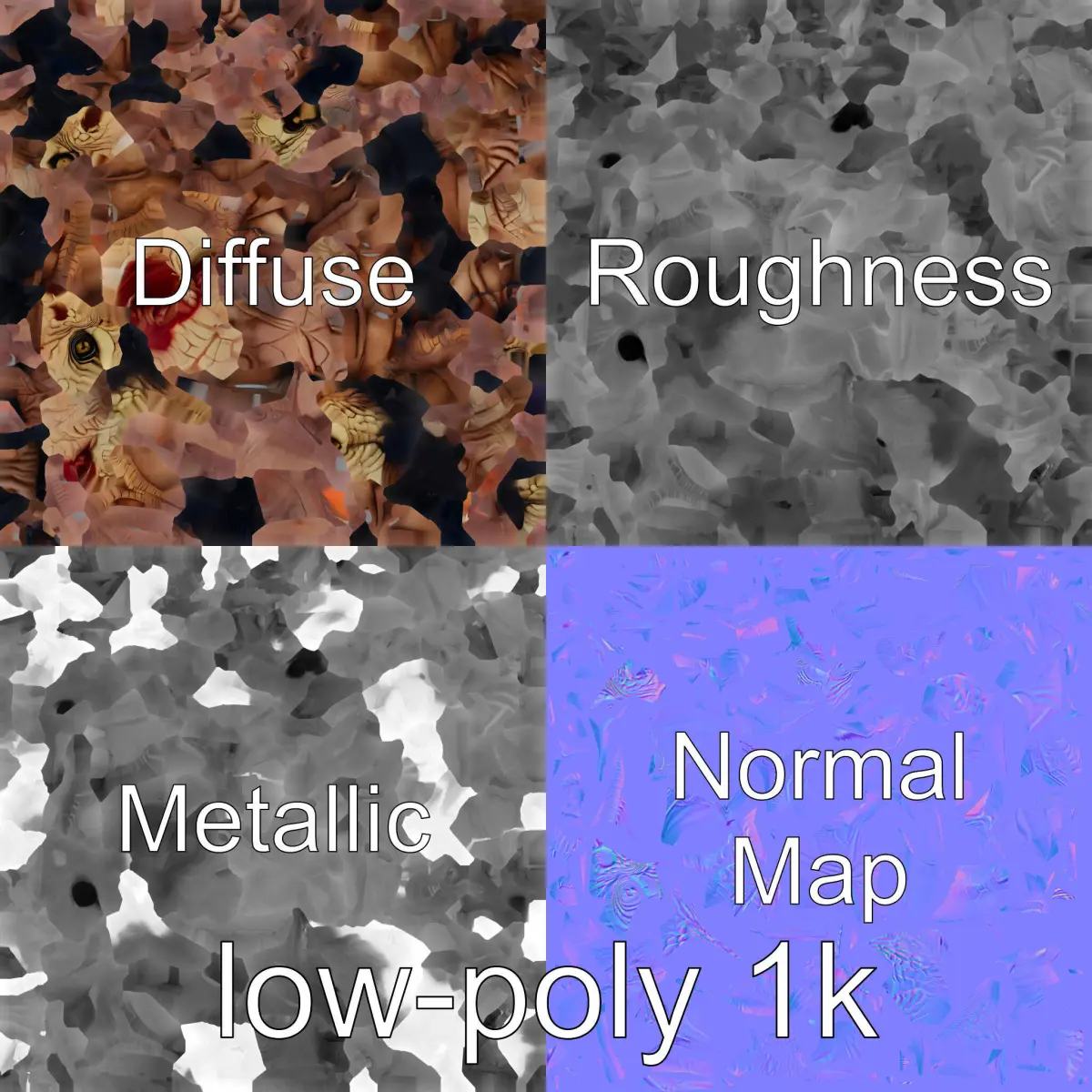 Each model has 3 levels of detail: low-poly, middle-poly, and high-poly, which allows for the use of this model in production rendering (such as 3ds Max, Maya, Cinema 4D, Blender, Vray/Corona/Cycles, and all others), game engines (Unity and Unreal compatible), and interactive presentations, providing a choice of detail based on the LOD System principle. This model excel in fantasy games, horror scenes, and as a unique character asset in animations. The model's textures are PBR, Diffuse, NormalMap, and reflection/roughness/metallic, suitable for any modern rendering engine. All models are accurately unwrapped and have no overlapping UVs. All textures are 4096*4096 in size. If you liked this model, please like and leave a comment.