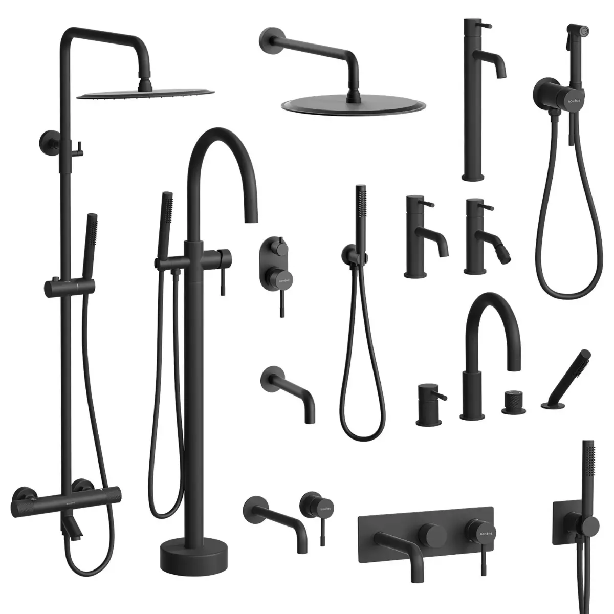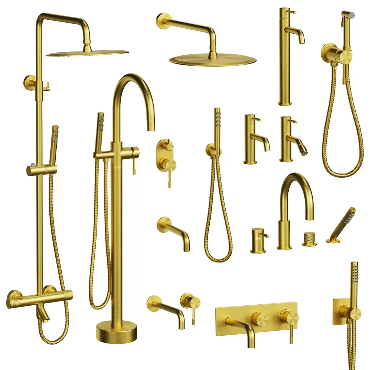 - Built-in faucet + hand shower + spout
