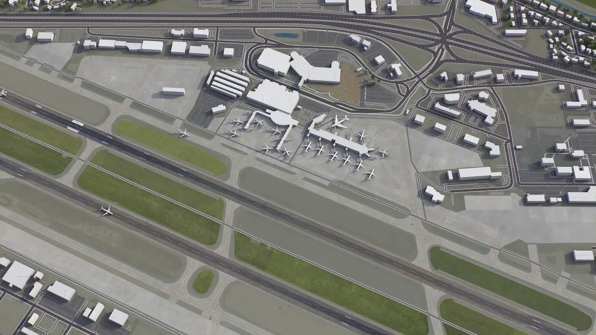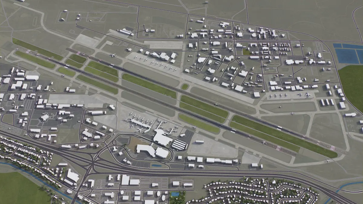 - Trees, vegetation, landuse and airport surface with the textures assigned