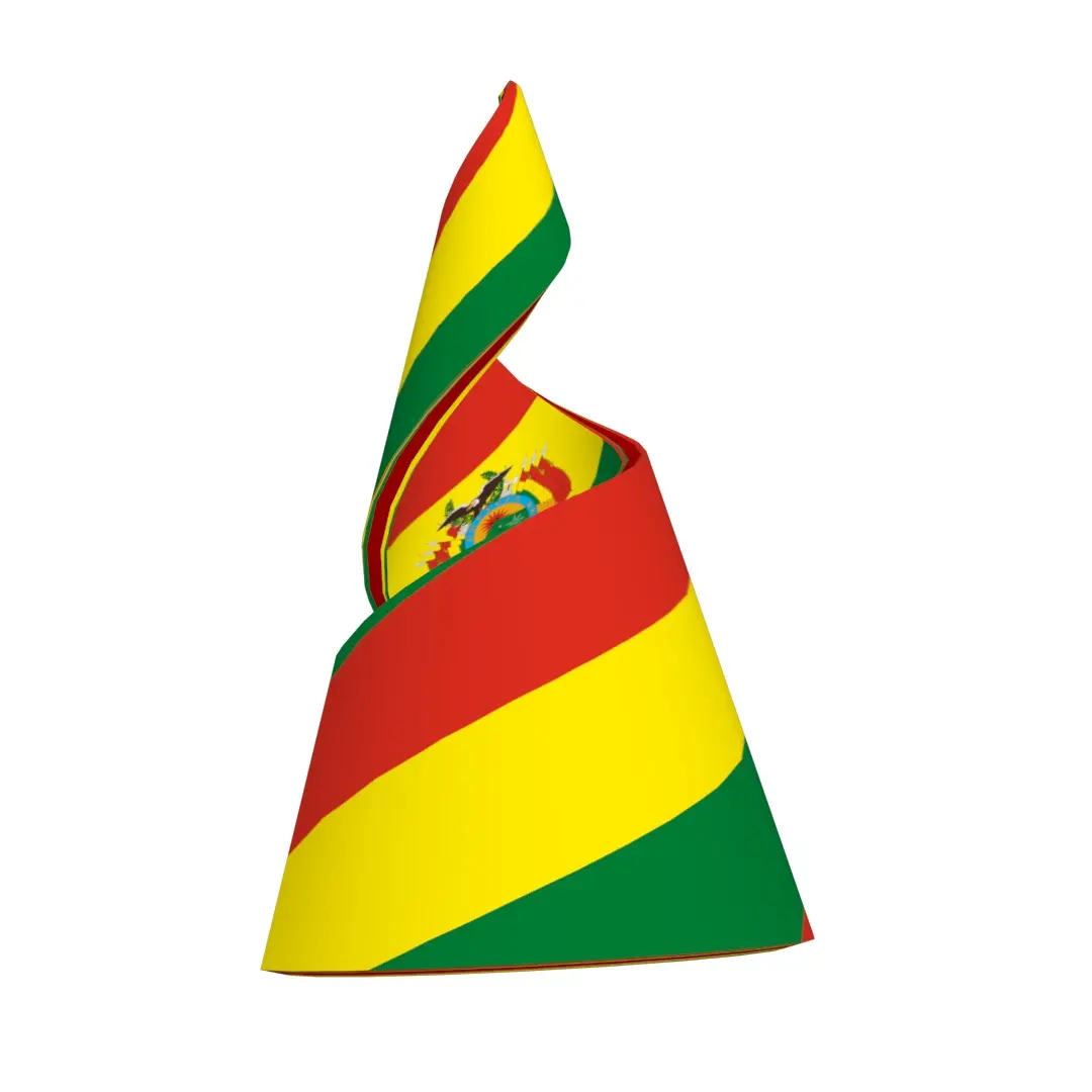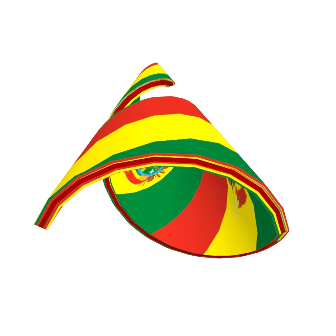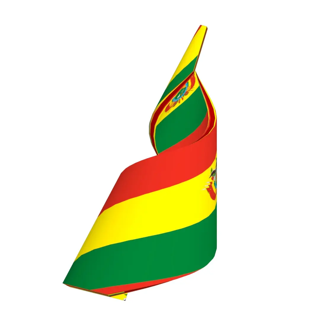 A 3D Double Helical Structure of Bolivian flag. The national flag of Bolivia is a tricolor rectangle, with the colors red, yellow and green, in a ratio of 1:1:1, the red on the superior part occupying a third of the flag’s width, yellow in the middle band using the same width, and green in the inferior part. Bolivia is a landlocked country located in central South America. It is a country with the largest geographic extension of Amazonian plains and lowlands, mountains and Chaco with a tropical climate, valleys with a warm climate, as well as being part of the Andes of South America