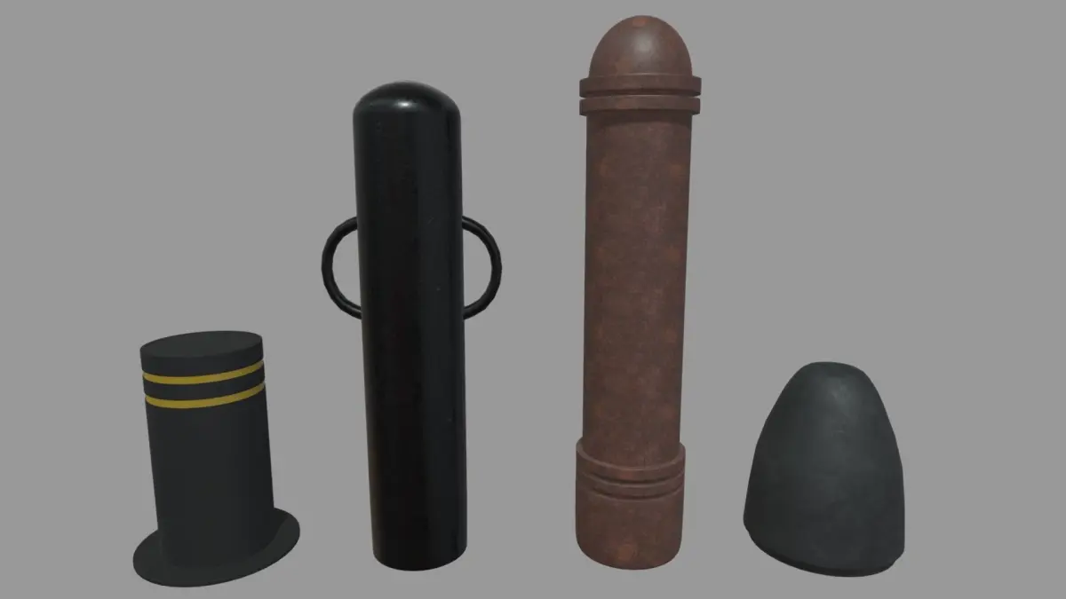 The 4 bollards will have textures, fbx, obj, mb, dae, blend and substance file, all in one unique UV.