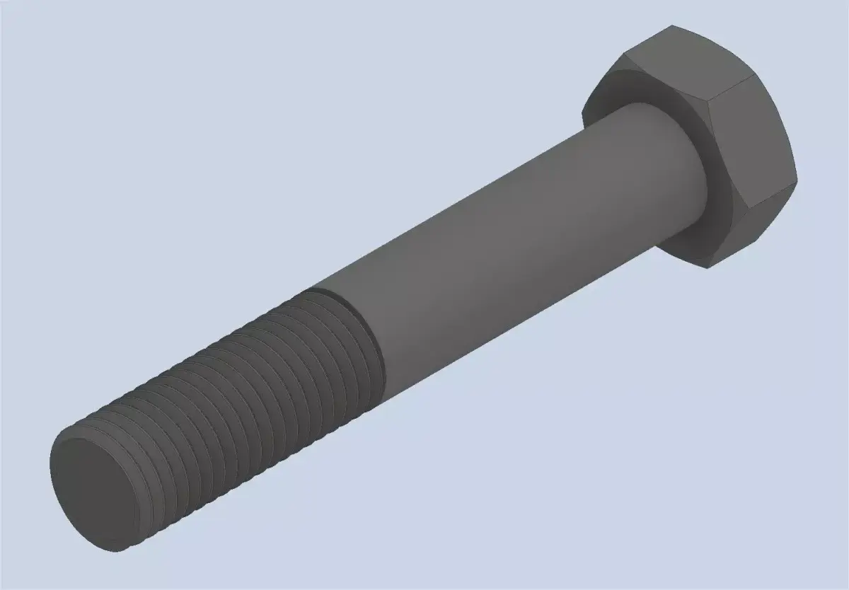 Autodesk Inventor model. Bolt Partial Thread Hexagonal Head M24x140mm. This product has been designed with high precision and real dimensions and can be used in all programs and all uses, as long as they use one of the following extensions (.ipt/.stp/.obj/.mtl) and you can modify its measurements or appearance through the Autodesk Inventor program or similar.
