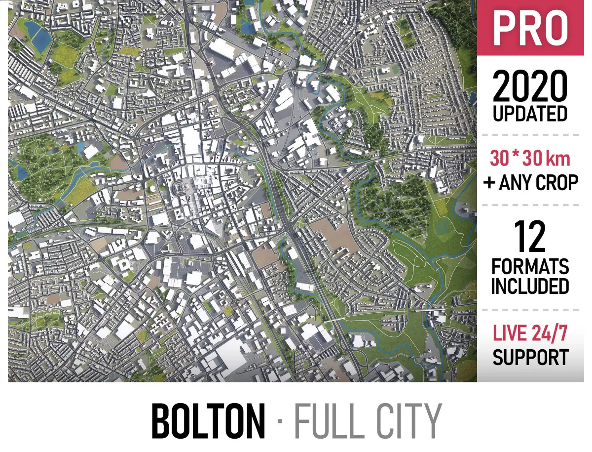 - Full city extents up to 100 x 100 km — or crop to an area of interest for better format compability and scene performance