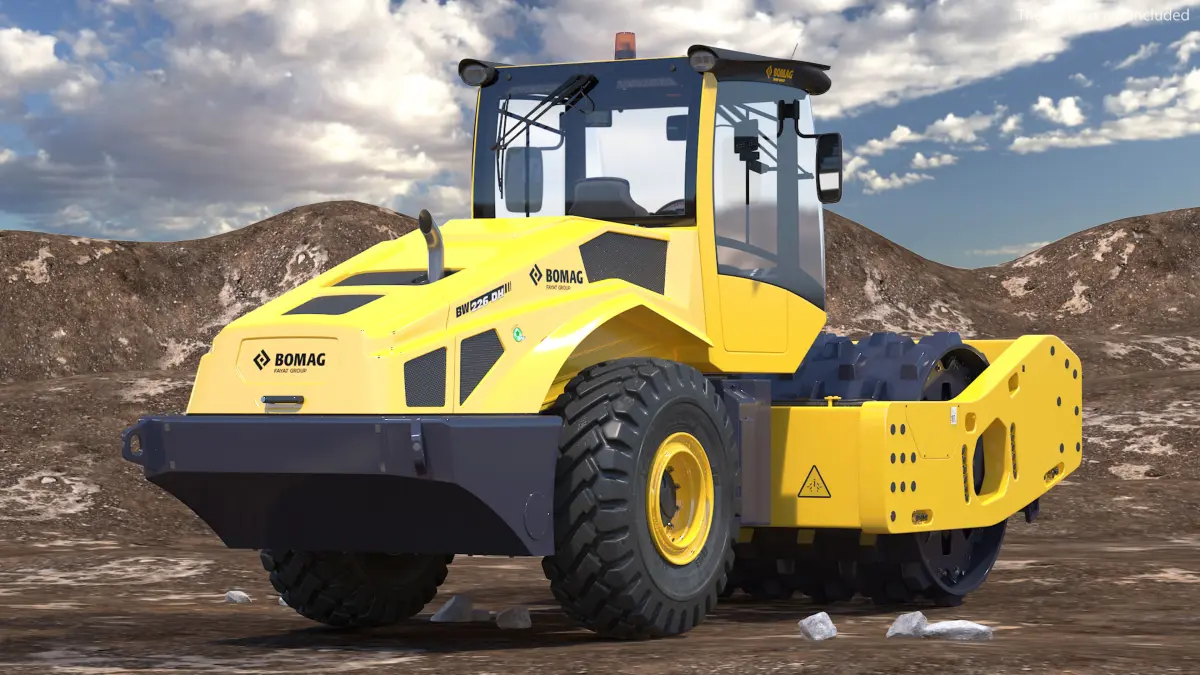 BOMAG BW226 PDH5 Single Drum Compactor New Rigged vehicle a single drum roller heavyweight device or soil compactor transport.Industrial roadworks road construction or service industrial road roller vehicle used at car parks, access roads, and light earthworks. Modern earthwork heavyweight road roller compactor (drum compactor) a heavy duty machine that used to various construction works and to increasing the density of loose road construction materials.Special modern roadworks drum compactor vehicle used for heavy duty road surface works and earthwork service, and designed for landfill and backfilling work.For drum rollers, drum compactor machines, construction works, road works, building works, road repair, earthwork machines, heavy duty vehicles, road earthworks, municipal services, compaction construction earthworks devices, road surface repair, asphalt roadworks, municipal services, road paving, asphalt works, asphalt construction works, road construction business, earthwork compactor vehicles, advertising, promotional, educational, documentary, or marketing projects.