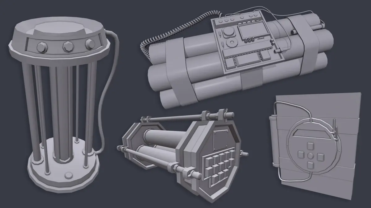 This product contains 15 types of Bomb as Base mesh (no UVs and Texture).