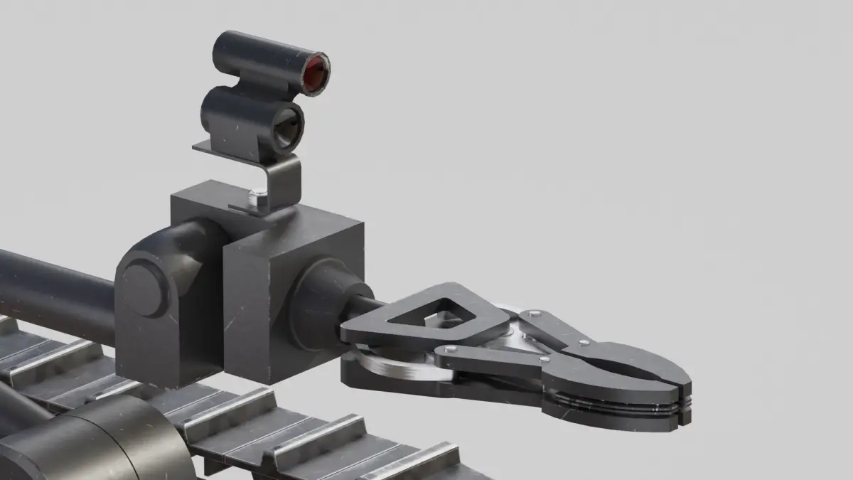 A model of a remote controlled robot designed to assist explosive ordnance disposal, with a camera for view, antenna for communication and a mechanically correct claw for object manipulation. Made in blender and textured in Substance Painter. Preview images rendered in eevee.