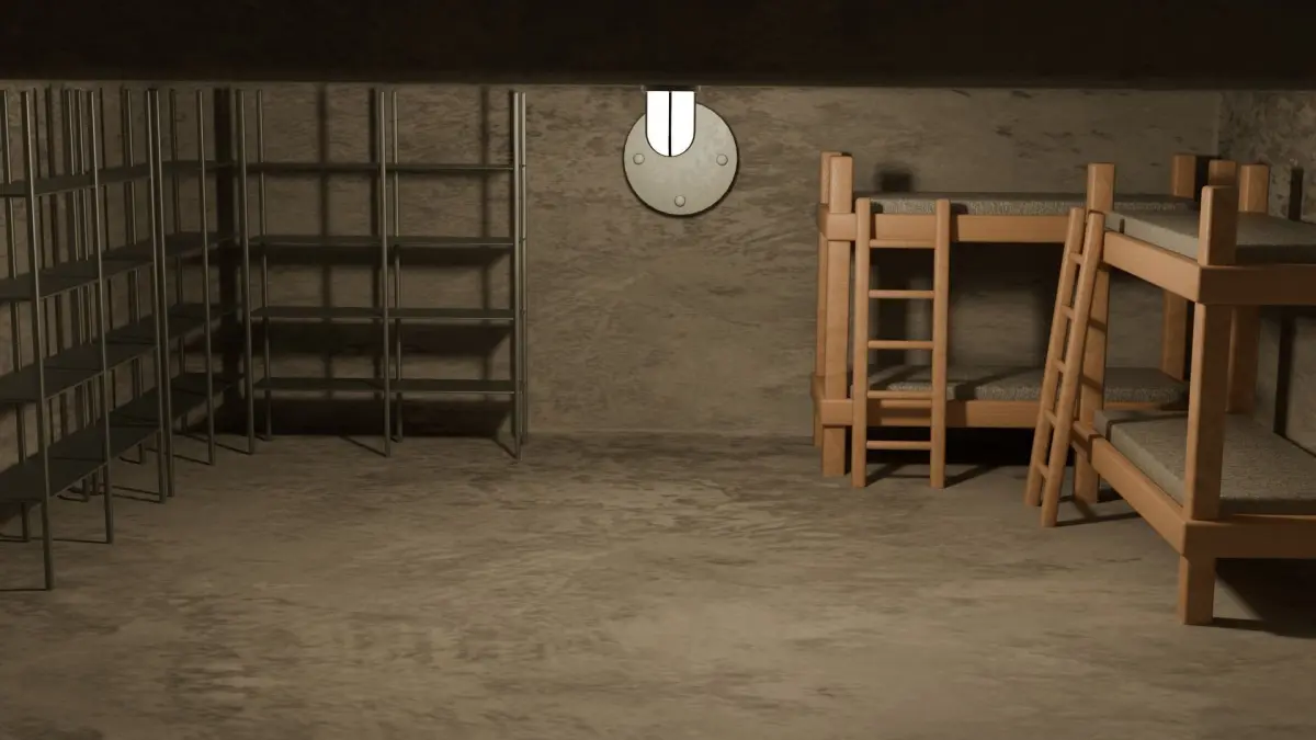 3D Bomb shelter for times of war, can be used to protect 3D characters from bombs and missiles. Shelves and beds included inside for longer stay.
