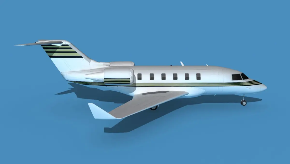 The Bombardier CL-604 is a member of a family of jets produced by Bombardier and developed by Canadair. The jets were developed from a concept by Bill Lear, designer of the Lear Jets. Production started 1986 and is still in production. It has a range of 3750 nm and seats 14-18. It cruises at 450 knots. The aircraft is still in production as of 2021 and more than 1000 have been built.The model was built near to scale in real units and built based on drawings, photos, and other documents. This model has a moderately detailed cockpit and the following animateable features; ailerons, flaps, elevators, rudder, landing gear, canopy and landing gear doors. These models render very well and look very realistic using good animation, lighting and rendering technique. It can be used in an animated or static position within a scene, animation or animated video, or possibly programming for a flight simulation application. This model was not designed for 3d printing, these are to be used as digital files only. If you purchase one for digital printing we do not guarantee that your print will be successful.Exporting of models is limited but good for several software applications. This model is fully textured with all materials UVW mapped and applied. Most materials are planar mapped and major materials include texturing. All textures and materials are included as shown. Objects are logically named for ease of scene management.No cleaning up necessary, just drop your models into the scene and start rendering.No special plug-ins are needed to open scene.In most cases the liveries are based on actual service liveries or paint schemes. Many of the units, airlines or countries who flew the plane are represented here. Dreamscape Studios is a US 3d modeling firm specializing in building high definition, accurate, and detailed 3D models of commercial, civilian, and military airplanes, ships, buildings and other subjects.Dreamscape 3d models are built in ultra-low to ultra-high polygon count, (most often) near to scale and include a good amount of detail based on the resolution target. If you have a question, error or problem with the model, let us know and we will do our best to provide or get a solution for you. Be advised our models are not designed for 3d printing unless they are advertised for that purpose.