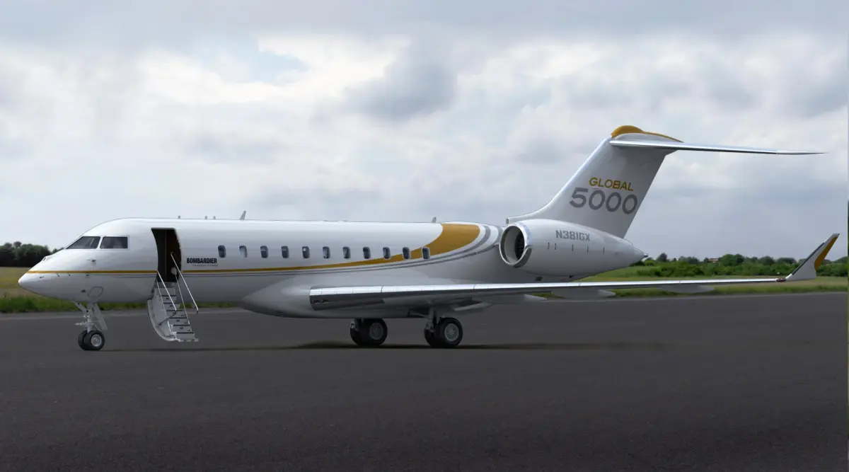 Realistic 3d model of Business jet Bombardier Global 5000.