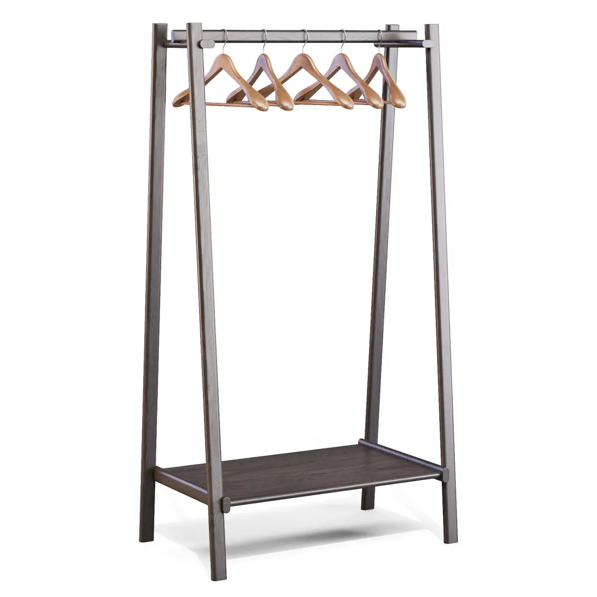 - Isola is a clothes hanger with clearly recognizable shapes: the idea was actually developed from a platform supported by trestle uprights. As its name indicates, it was conceived as an island to support a walk-in wardrobe or as a comfortable, informal wardrobe in an entrance area. Its light and essential design creates a welcoming atmosphere thanks to the use of solid wood in the warm shades of American walnut.