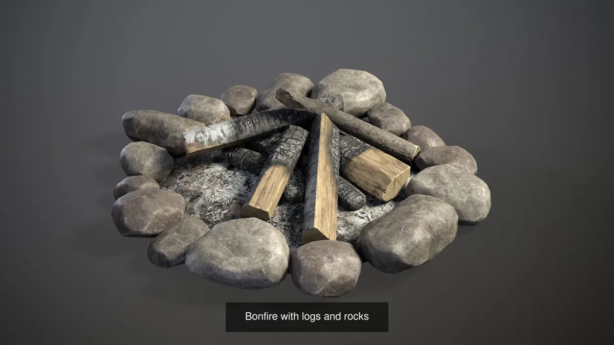 - Bonfire_Stiks: texture size 2048x2048px (Texel Density ~ 1600px/m),
