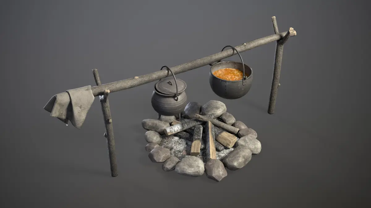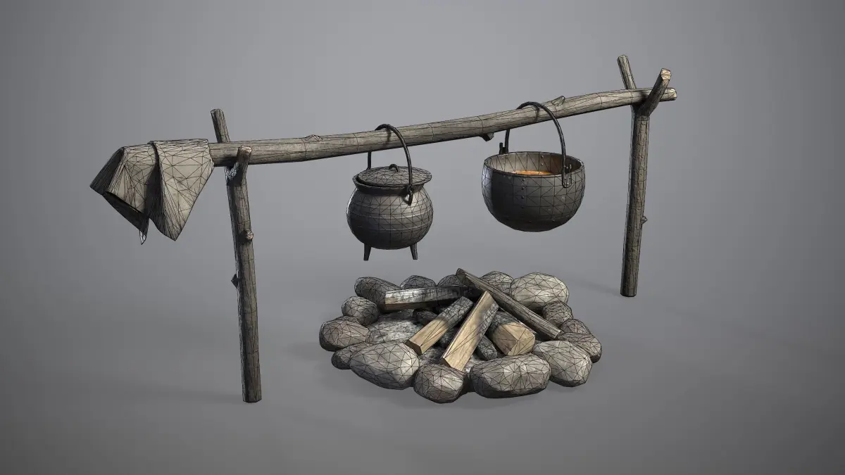 1) Bonfire_Stiks: texture size 2048x2048px (Texel Density ~ 1600px/m)