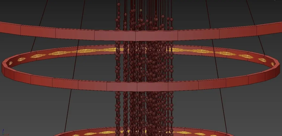 Светодиодная люстра в виде комбинации колец золотого и черного цветов с декоративными стеклянными подвесками по центруАртикул:bonnet01№ товара:2683