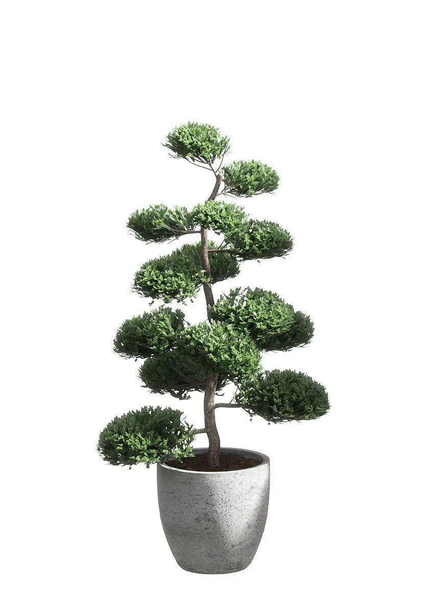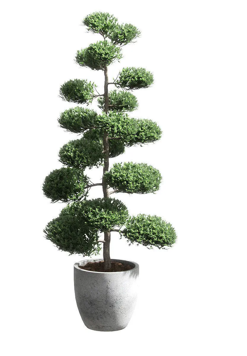 Trunk, branches, leaves, pot as a single object - 4 material IDs (concrete, earth, trunk, leaves)
