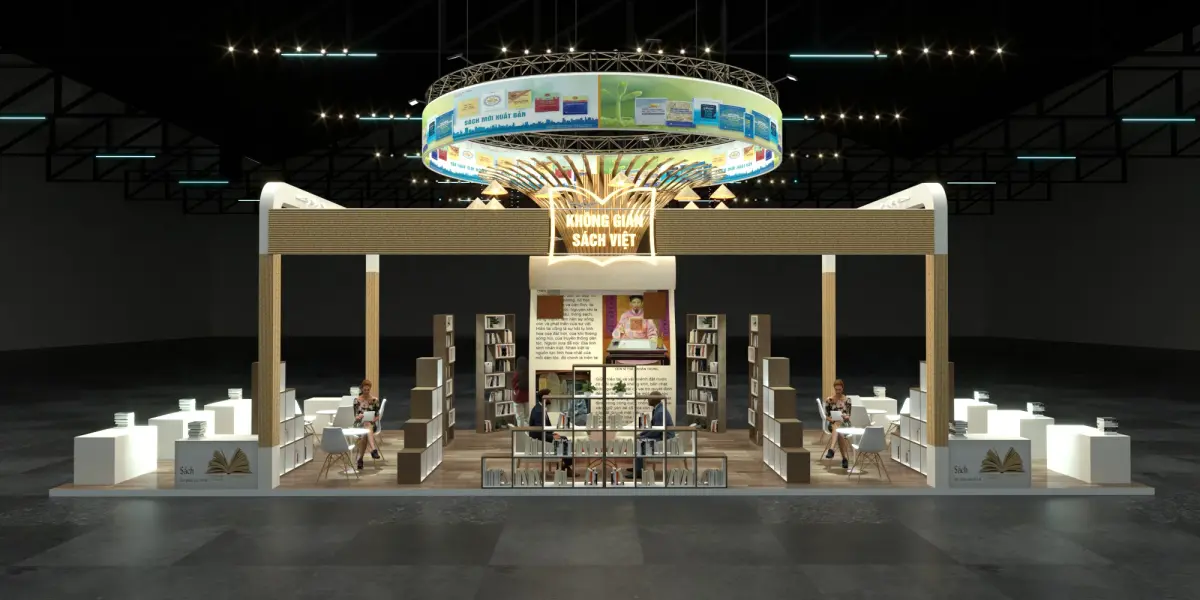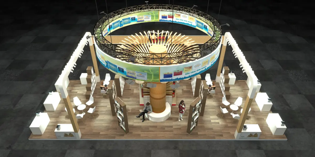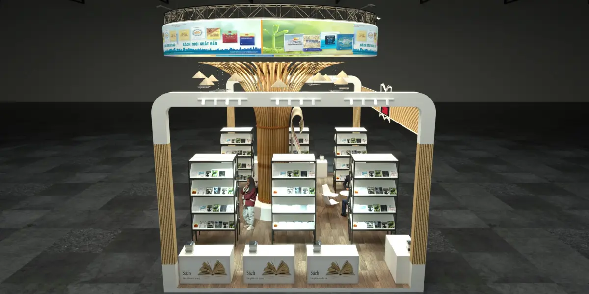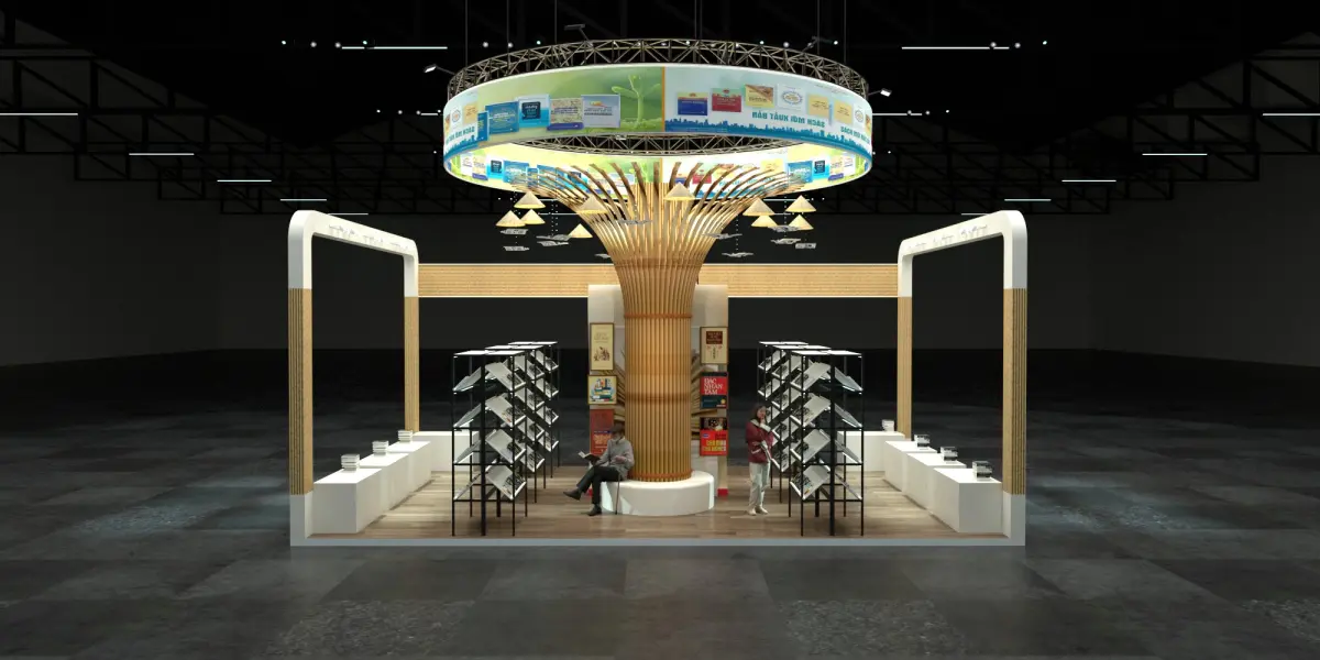 book exhibition booth book stall, sketchup, culture, interior design, bookshelf wood, promote cultural book products,Use sketchup and vray 6 software Book stall promoting cultural traditions, customs and people of Vietnam