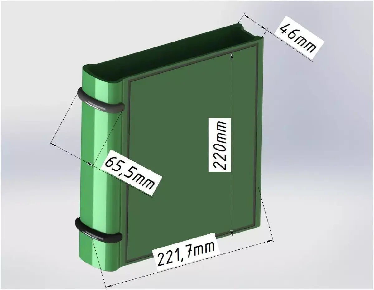 A decorative vase and desk organizer shaped like a classic hardcover book. The interior cavity allows it to function as a pen holder, flower vase, brush container, or accessory storage.Its clean, minimal geometry prints beautifully and can be sanded or painted to mimic aged leather, vintage book textures, or a sleek modern style.