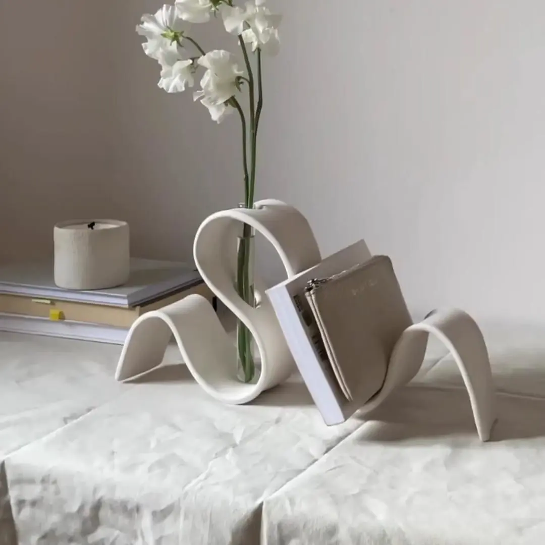This book stand with a vase can be placed on any table like in an office, study, or dining area.