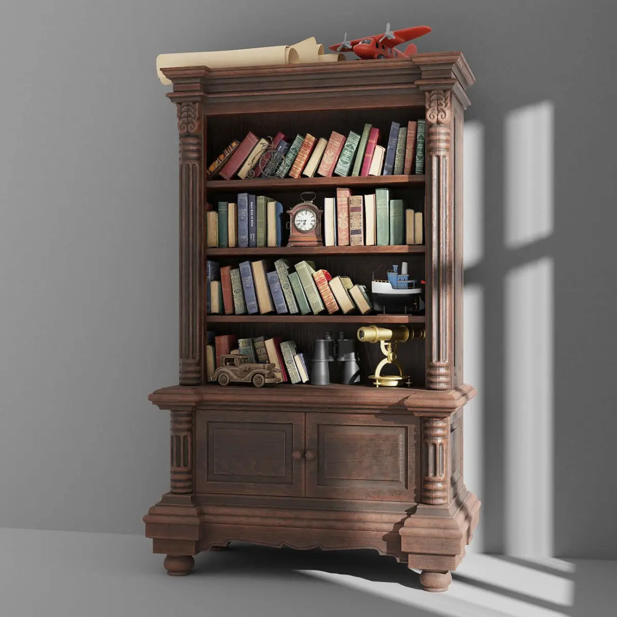 This bookcase diorama is a high end, photorealistic 3D model, that is created to help you add the realism to your project. The model is suitable for any visual production - broadcast, high-res film close-ups, advertising, games, design visualization, forensic presentation, animated movie production, still illustration etc. Models has real world scale, clean optimized quads-only topology and is ready for subdivision. Available in blend, obj, fbx formats. Originally was created and rendered in Blender. Scene doesn't use any external plugin or script. Model is based on original design and has no equivalents.