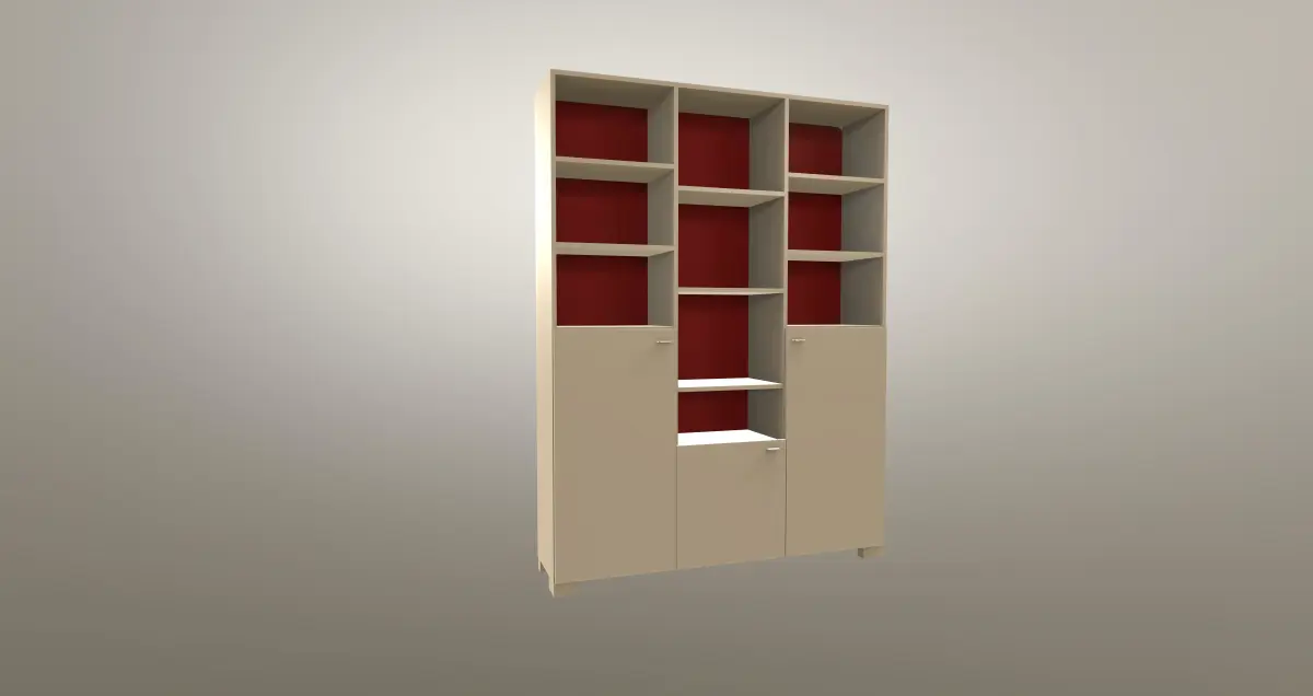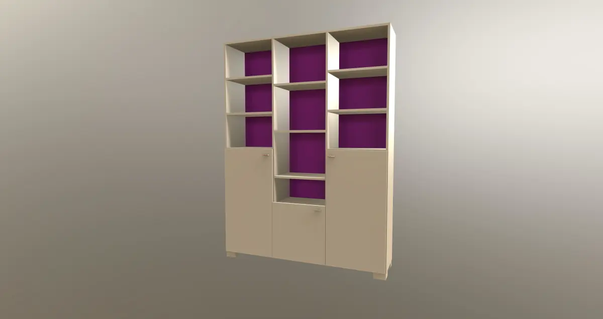 3D model of a bookcase. The model was developed using 3ds Max, Blender, Sketchup and 3D Coat. Images were rendered using 3D Coat and 3ds Max.