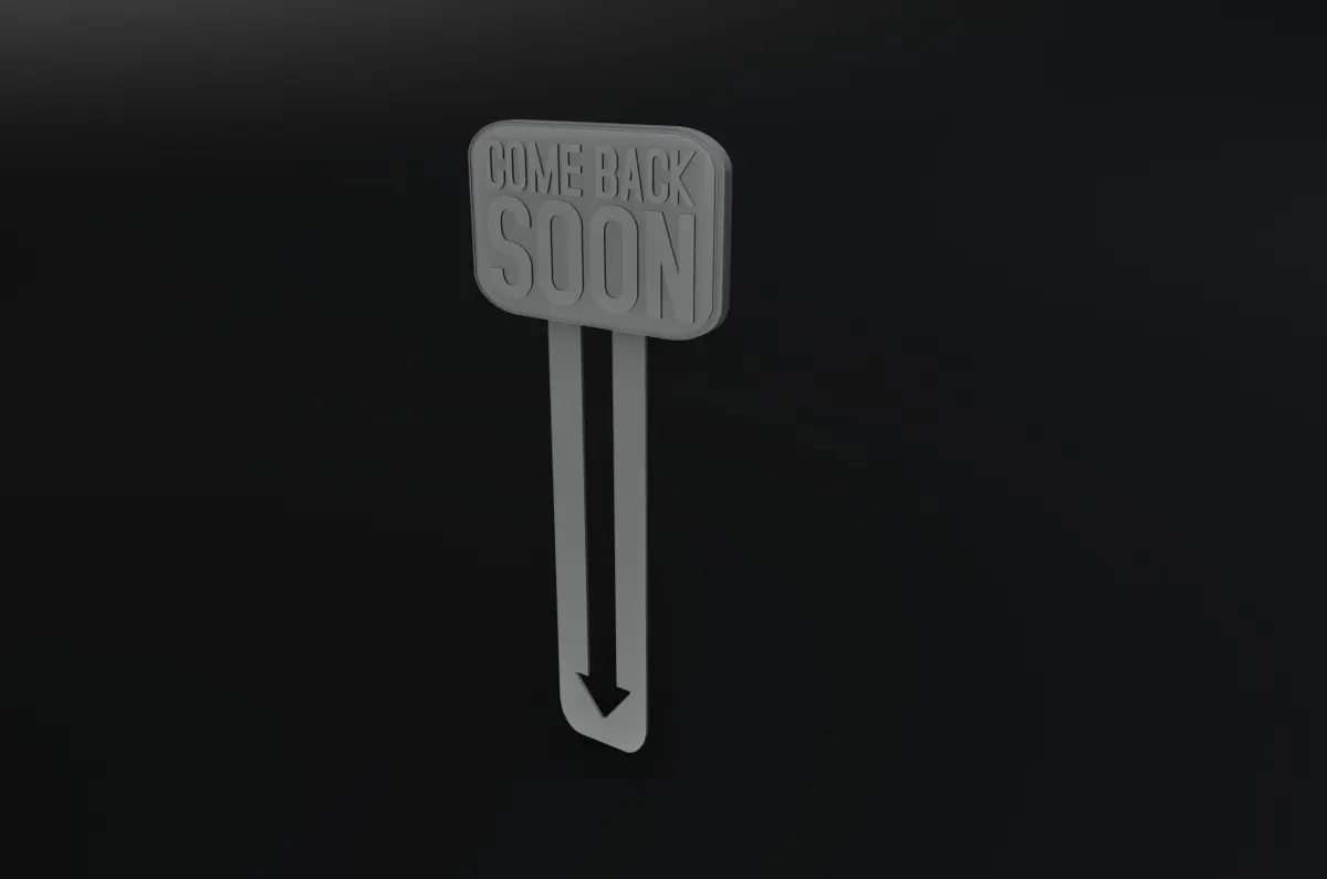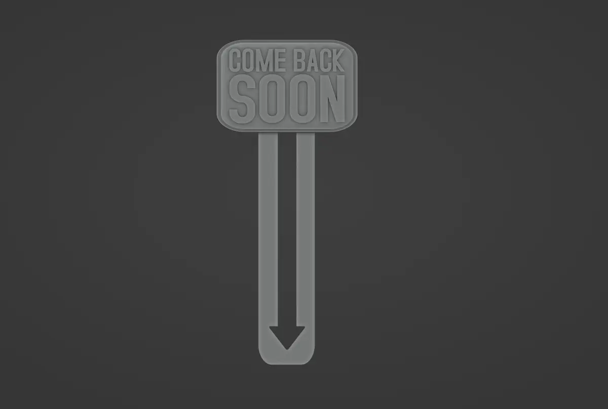 This is a 3D model of a bookmark with a note: “Come Back Soon”. Ready for 3D printing.