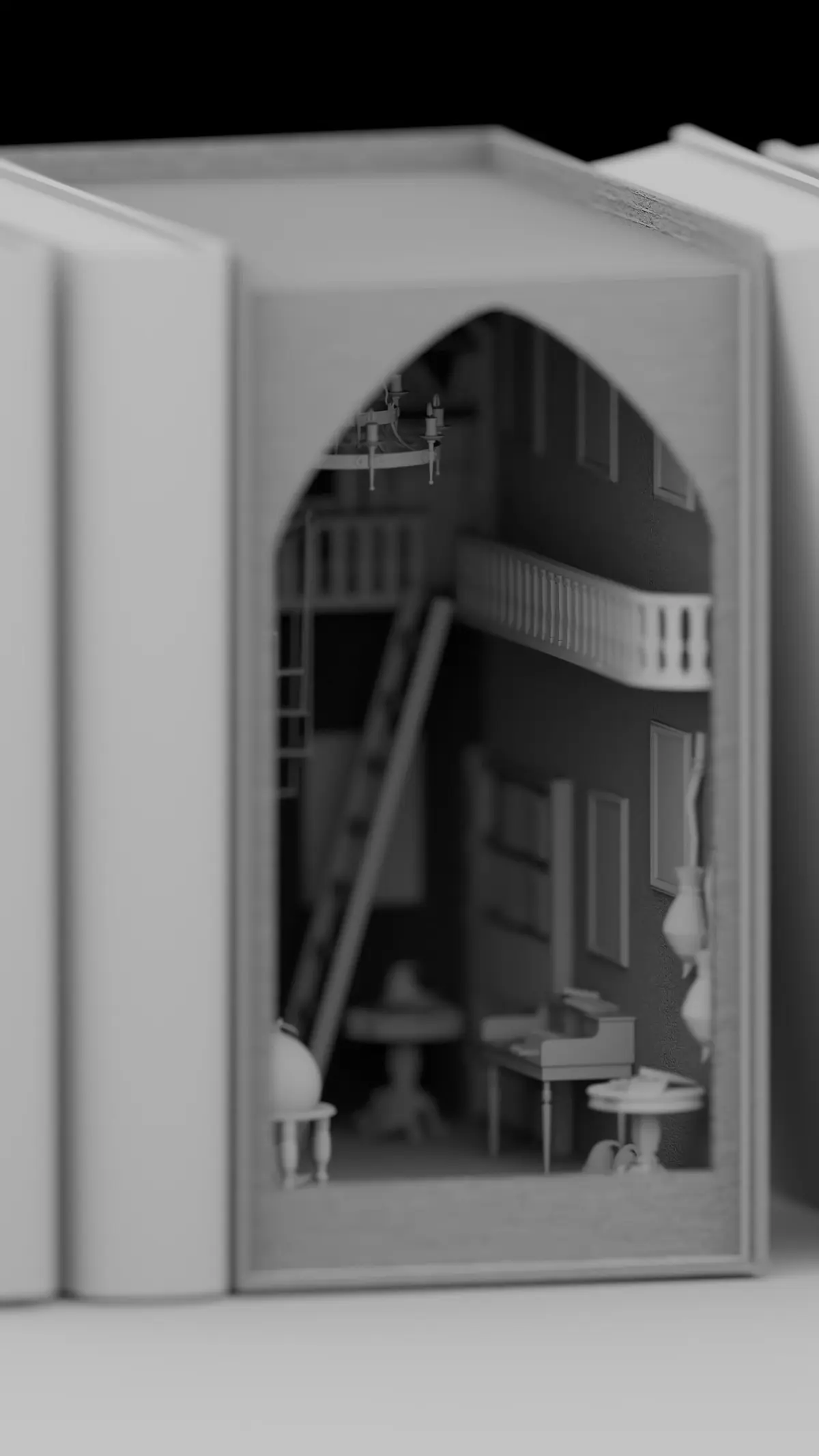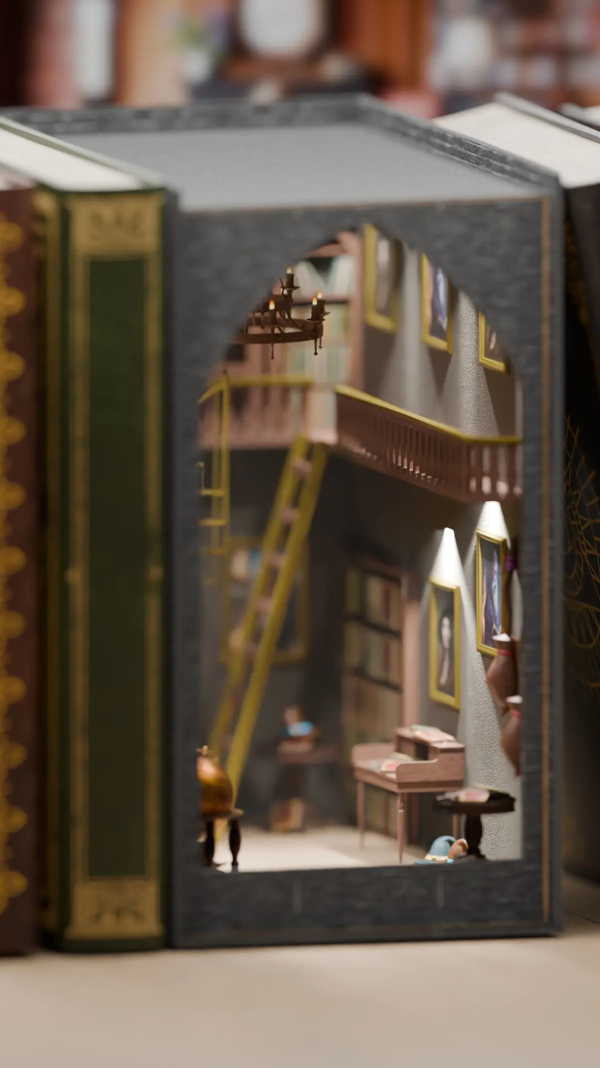 Step into the whimsical world of The Enchanted Tome, a delightful book nook crafted with the magic of imagination. This 3D model transports readers into a cozy haven reminiscent of a tiny wizard-inspired room, tucked within the comforting embrace of your bookshelf.