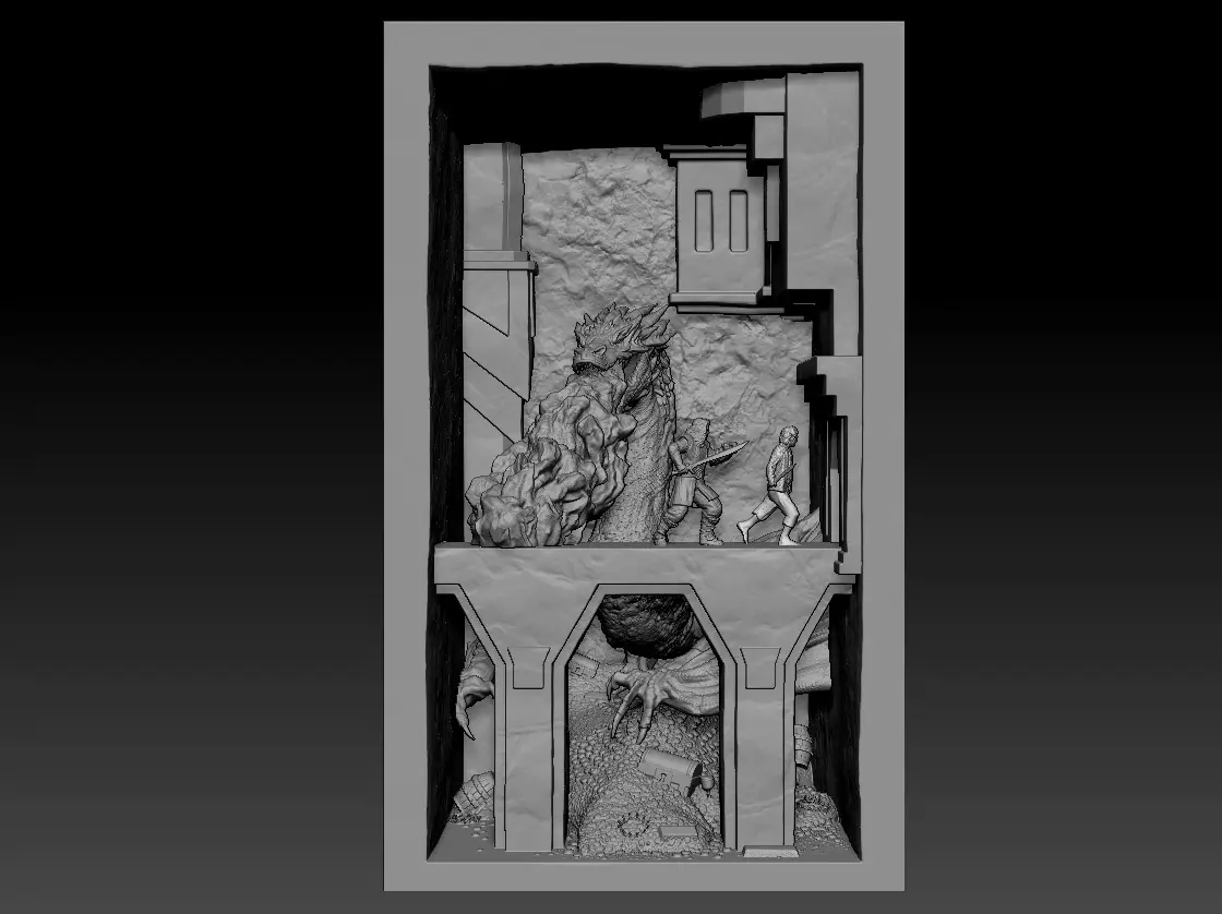 Hello everyone, Today I will present to you quite a difficult book nook, but I hope it is very beautiful. I chose the scene when the dwarves were fighting smaug, of course I would like to insert as many dwarves as possible, but there is not much space ((( So only Torrin and Bilbo.The fire is empty inside, so you can put light in there, it's better to print it with resin, of course. The wiring also goes through smaug, I made holes in Smaug's chest to replicate his fire-glowing scales like in the movie. BookNook Size: x - 130; y - 160; z - 216