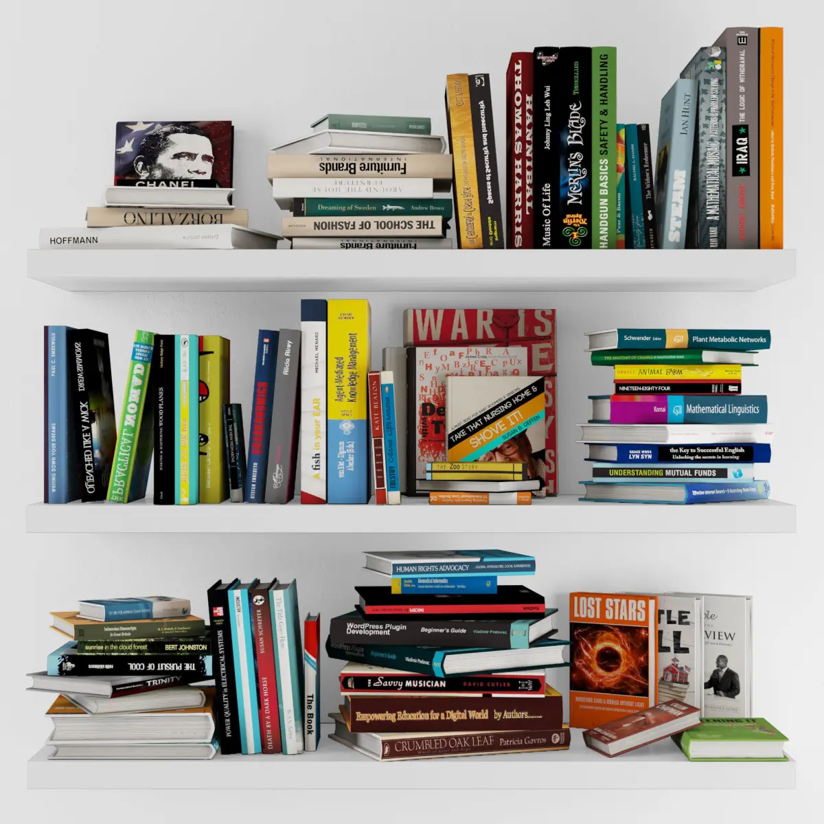 80 books with 80 different cover book texturesAlso you can use turbo for having a realistic view of books.
