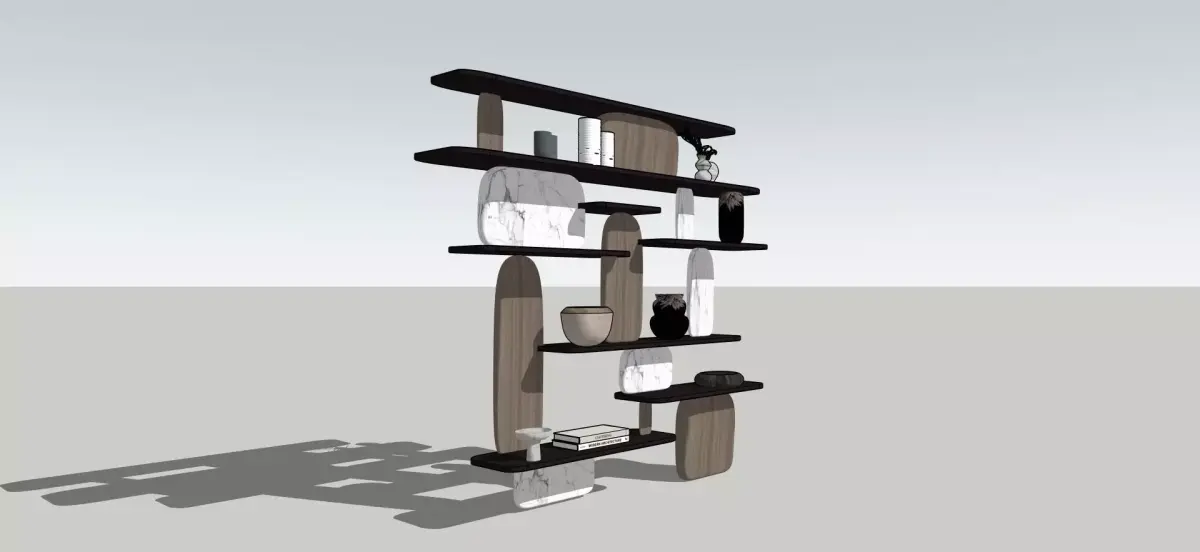 Modern Bookshelf/Partition designed by a professional architect and an interior designer. Modeled in Sketchup . Textures also included .